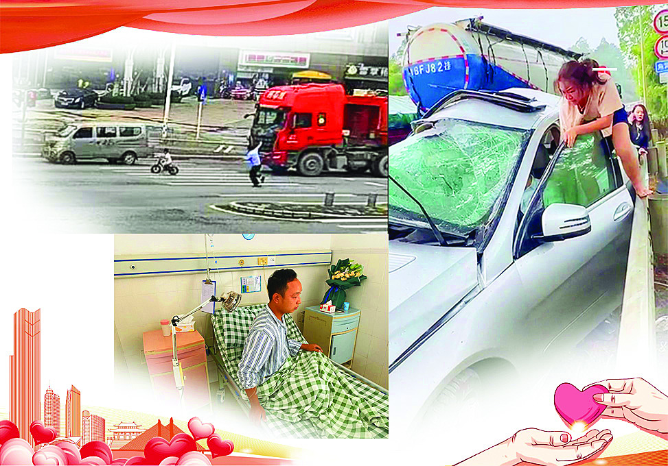 左上:車流中救下男童的“輔警哥”曾勇軍。 左下:擋刀救人的快遞小哥黎志偉。 右:車禍現(xiàn)場奮勇救人的“女俠”溫偉蓮。 惠州東江圖片社供圖