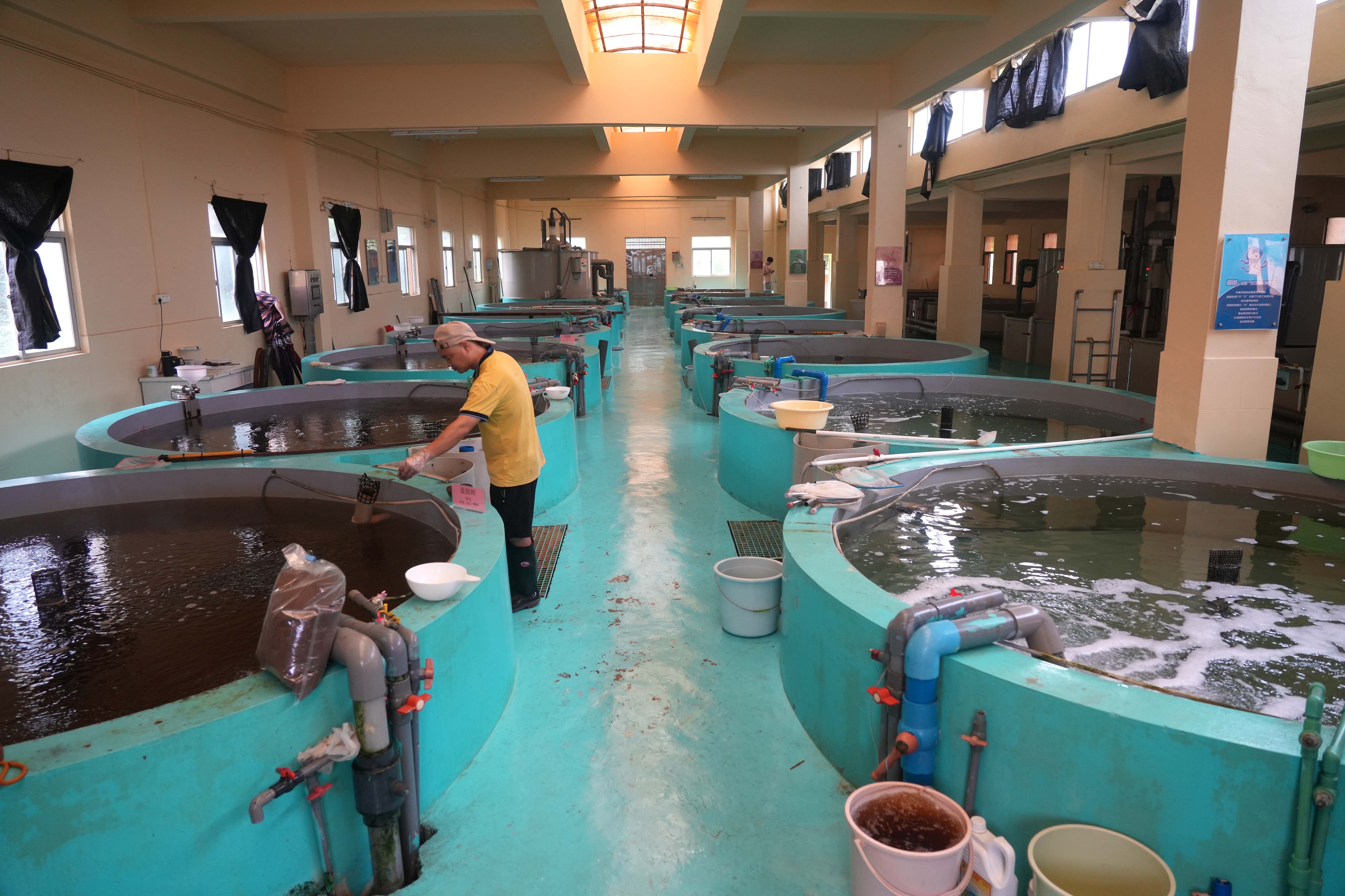 位于大亞灣的廣東省農(nóng)業(yè)技術(shù)推廣中心海洋漁業(yè)中心試驗基地藍(lán)圓鲹良種繁育車間。