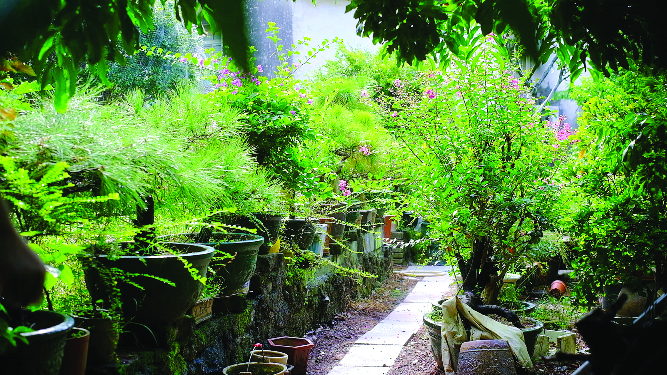 美麗庭院內(nèi)盆景錯(cuò)落有致。