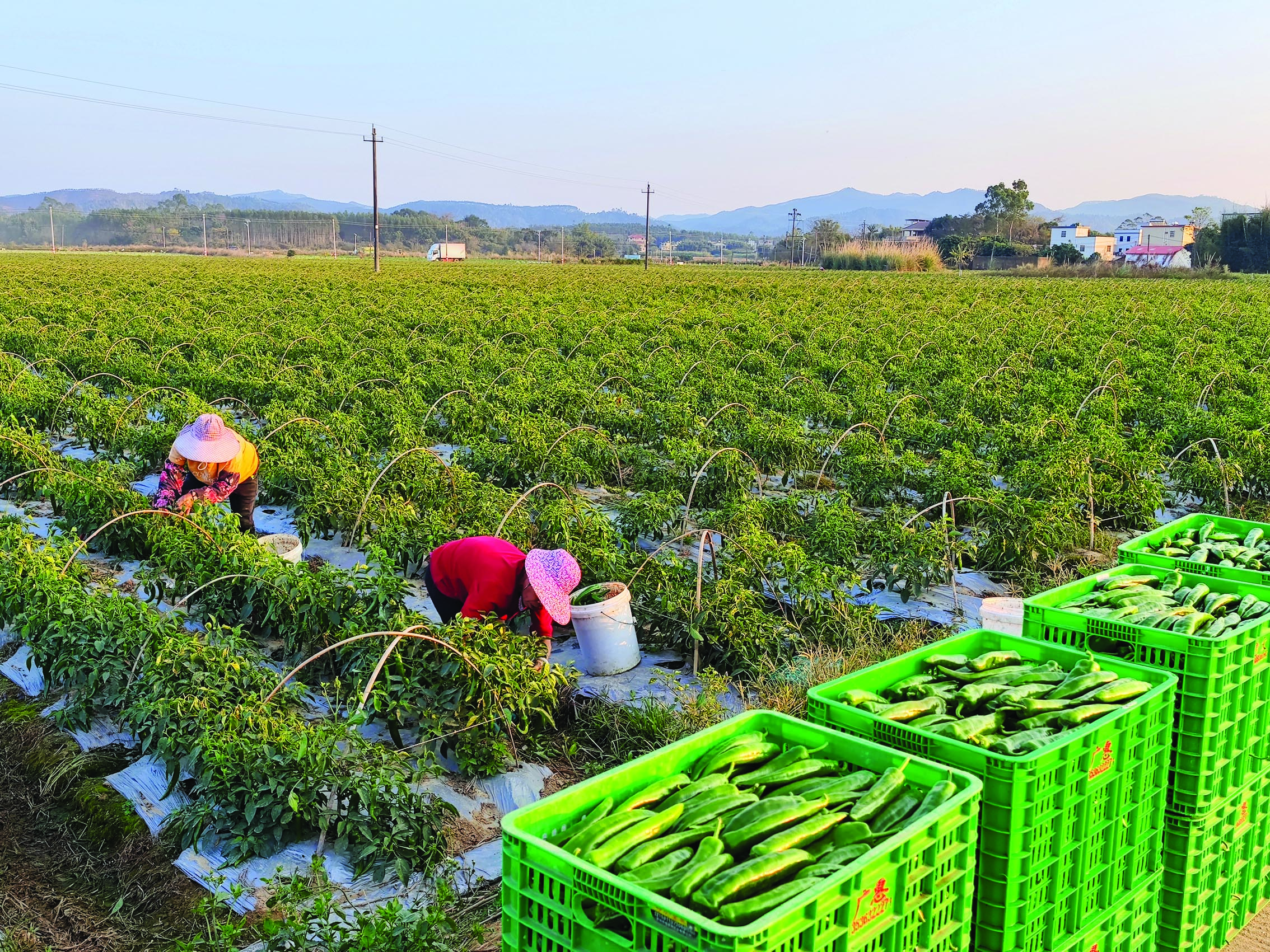 “當(dāng)時(shí)來到村里,看到有近800畝的連片土地丟荒了,覺得很可惜,于是我們通過土地流轉(zhuǎn)進(jìn)行復(fù)耕復(fù)種!兵櫭r(nóng)業(yè)種植基地負(fù)責(zé)人孫永龍告訴記者,2022年,他們大力開荒復(fù)耕,種植辣椒、梅菜、小番茄等,2023年開始初步有了好的收成。