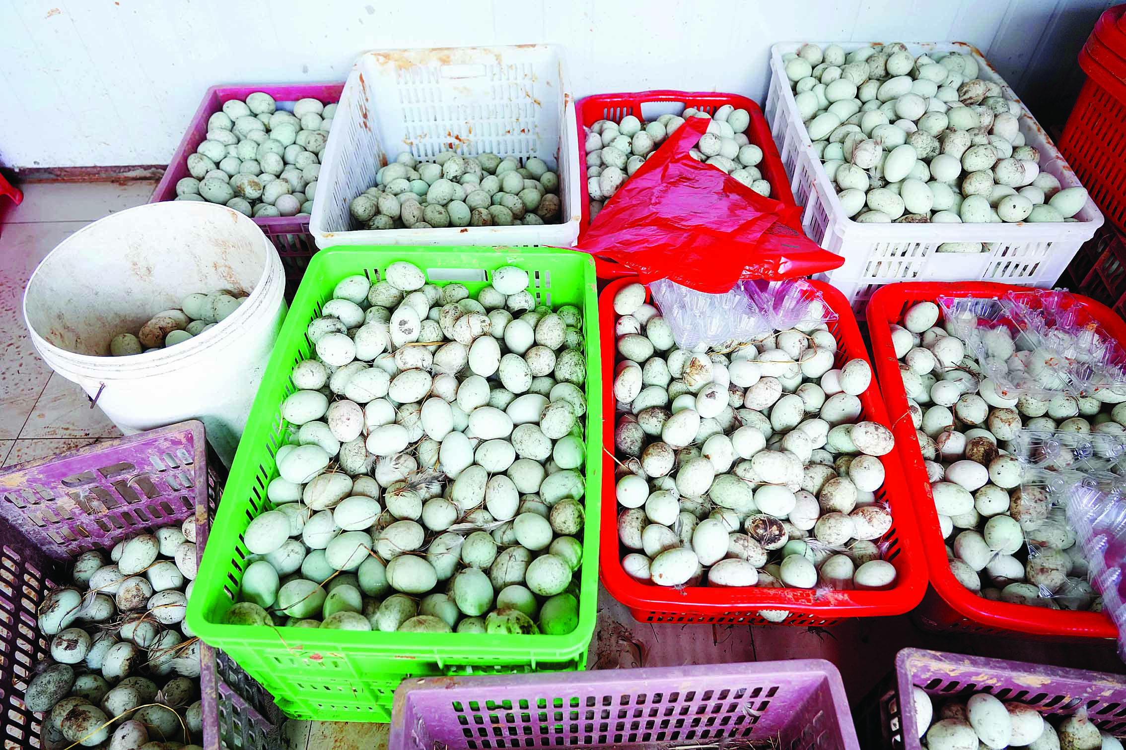 惠東縣鐵涌鎮(zhèn)油麻地村養(yǎng)殖的3000多只鴨每天可產(chǎn)蛋約1600枚。 惠州日報(bào)記者楊建業(yè) 攝