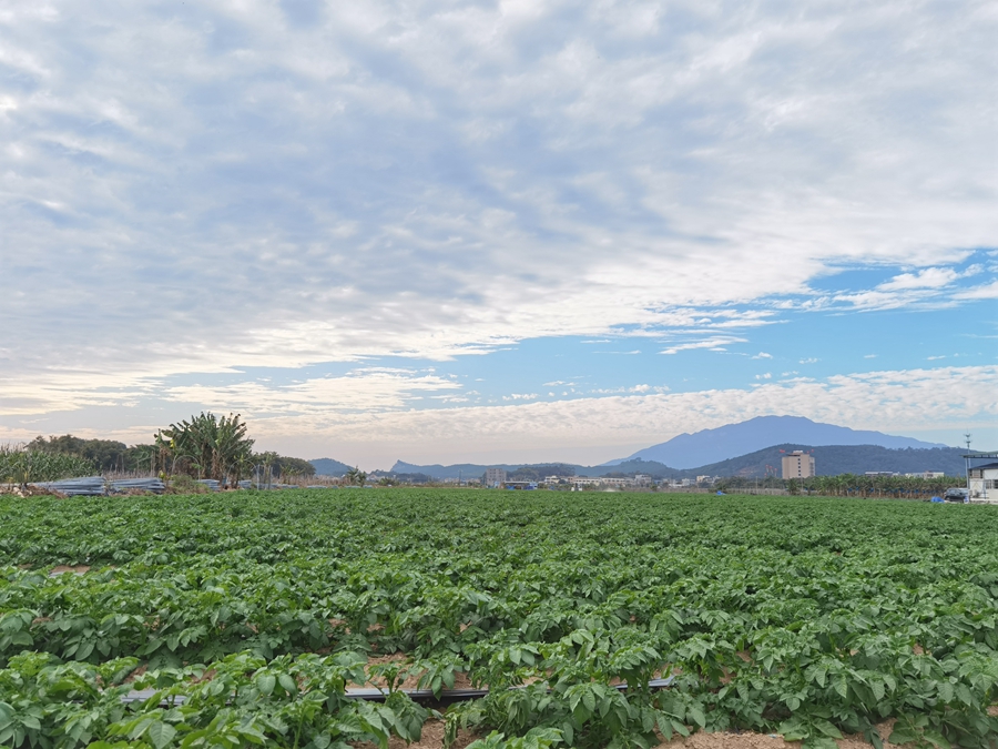 在湖鎮(zhèn)鎮(zhèn)顯崗村,沿著機耕小路來到田頭,包菜、馬鈴薯、豌豆等農作物長勢良好。