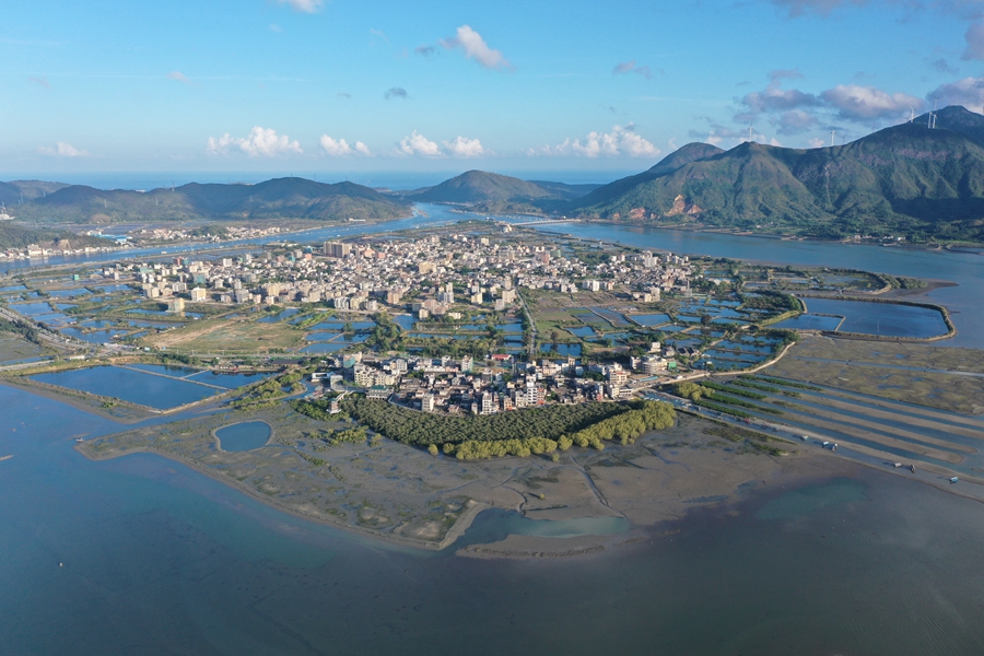 黃埠鎮(zhèn)鹽洲島海岸灘涂上紅樹林蓬勃生長。