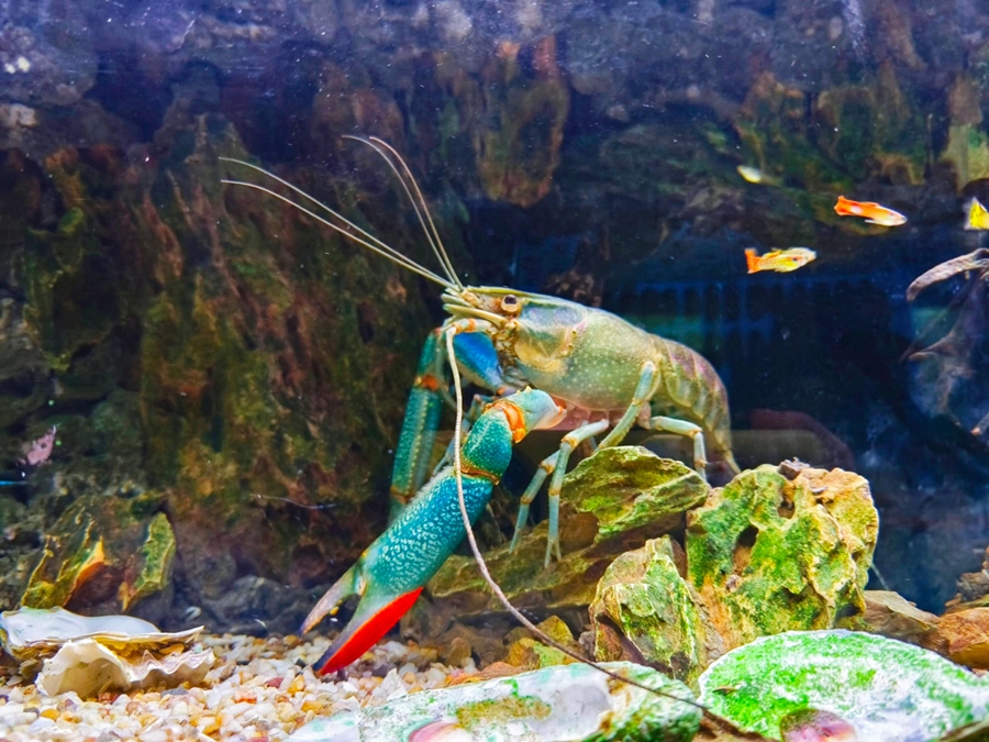 蝦鉗帶點(diǎn)紅,蝦鉗臂有著淡藍(lán)色,蝦體色褐綠。在惠州市新藍(lán)龍生態(tài)農(nóng)業(yè)科技有限公司的養(yǎng)殖基地,記者一睹淡水藍(lán)龍蝦真容。與平常所見的養(yǎng)蝦場不同的是,這里的廠房采用流動(dòng)水源進(jìn)行循環(huán),藍(lán)龍蝦在標(biāo)準(zhǔn)化的池子里生活。每個(gè)池子都擺放著一些“小房子”,供藍(lán)龍蝦歇息、躲藏。廠房內(nèi)溫度適宜,光線柔和,亮度適中,正是藍(lán)龍蝦喜歡的環(huán)境。藍(lán)龍蝦躲在自己的“小房子”里,有的探出腦袋,有的俏皮地游出來又游回去。
