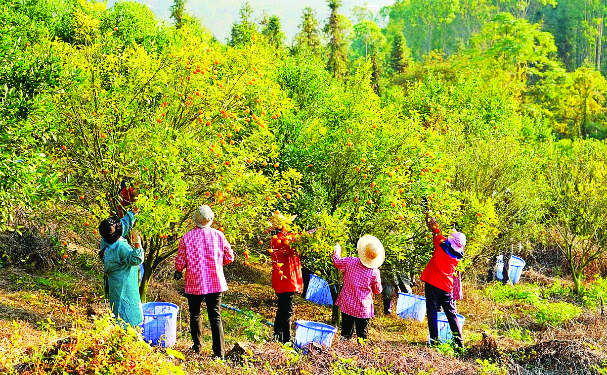 為了提高年桔的產(chǎn)量和品質(zhì),梁房金每年都會(huì)學(xué)習(xí)提高果園管理技術(shù)。他聘請(qǐng)了當(dāng)?shù)卮迕駚?lái)管理果園,為果樹(shù)施肥、修剪枝葉、采收果實(shí)等,不僅提高了果園的生產(chǎn)效率,也為當(dāng)?shù)卮迕裉峁┝司蜆I(yè)機(jī)會(huì),增加了他們的家庭經(jīng)濟(jì)收入。
