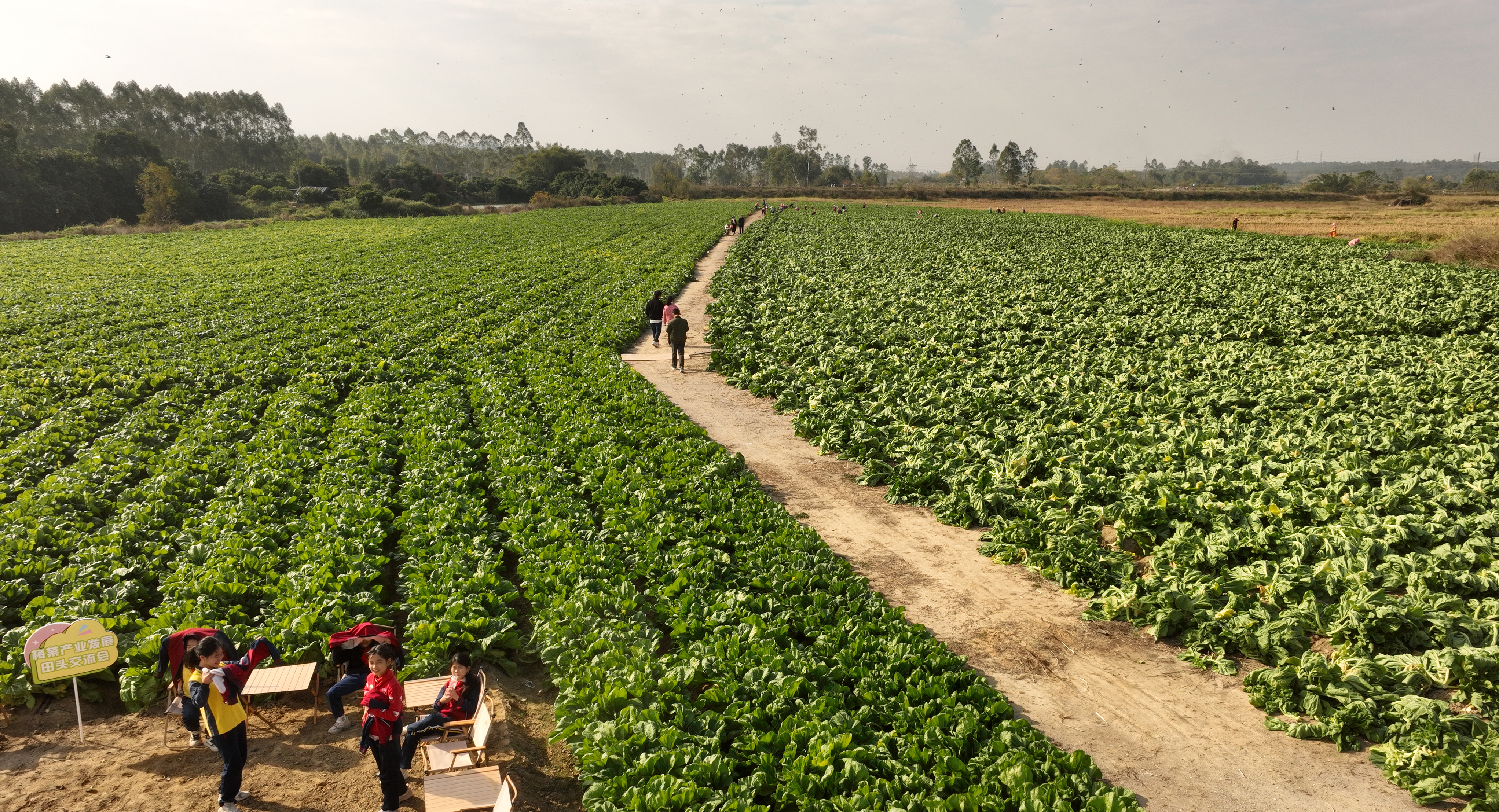 惠城區(qū)橫瀝鎮(zhèn)矮陂村連片的梅菜種植基地一片翠綠。惠州日?qǐng)?bào)記者鐘暢新 攝