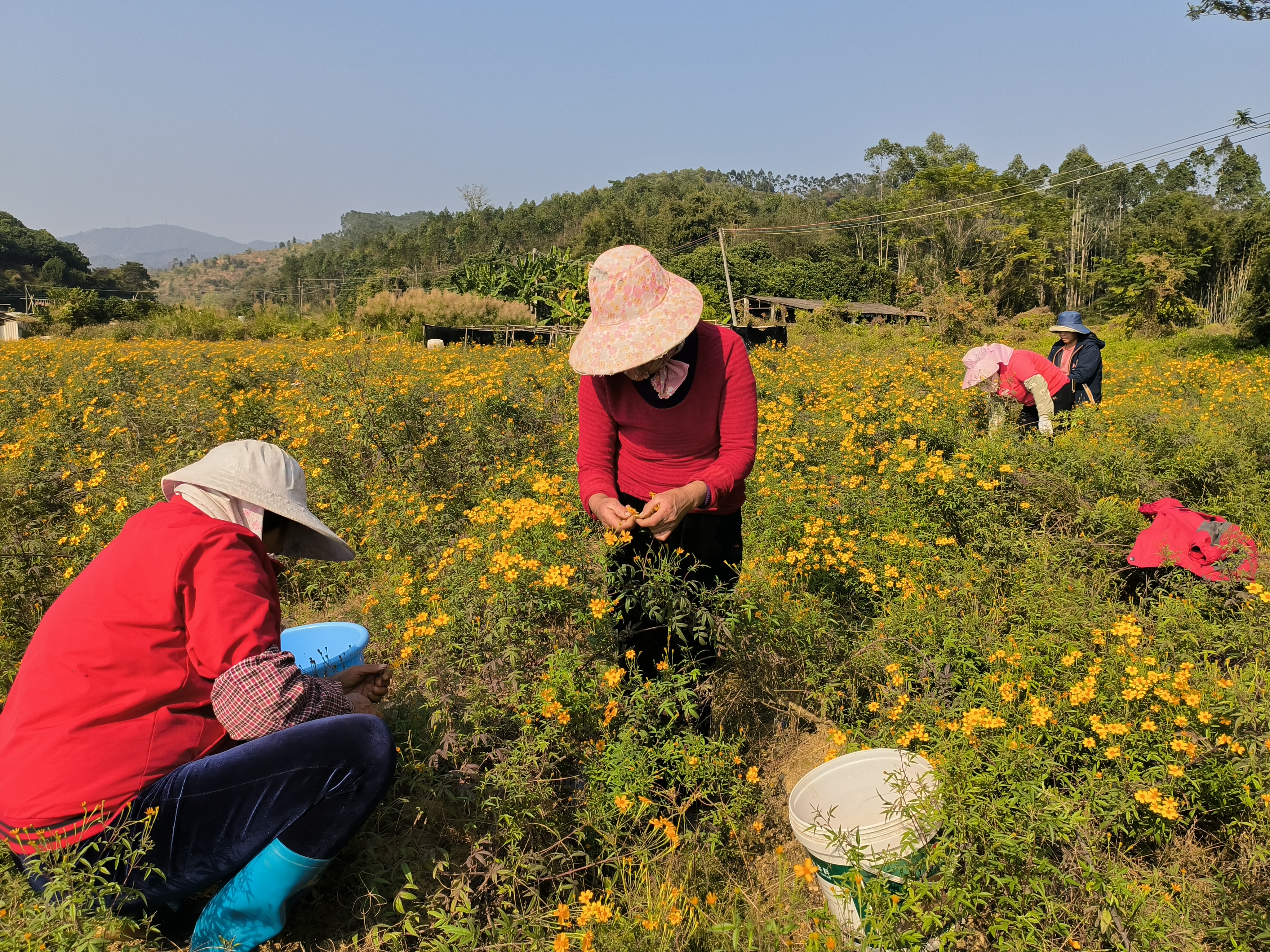 村民在采摘芳香萬(wàn)壽菊。