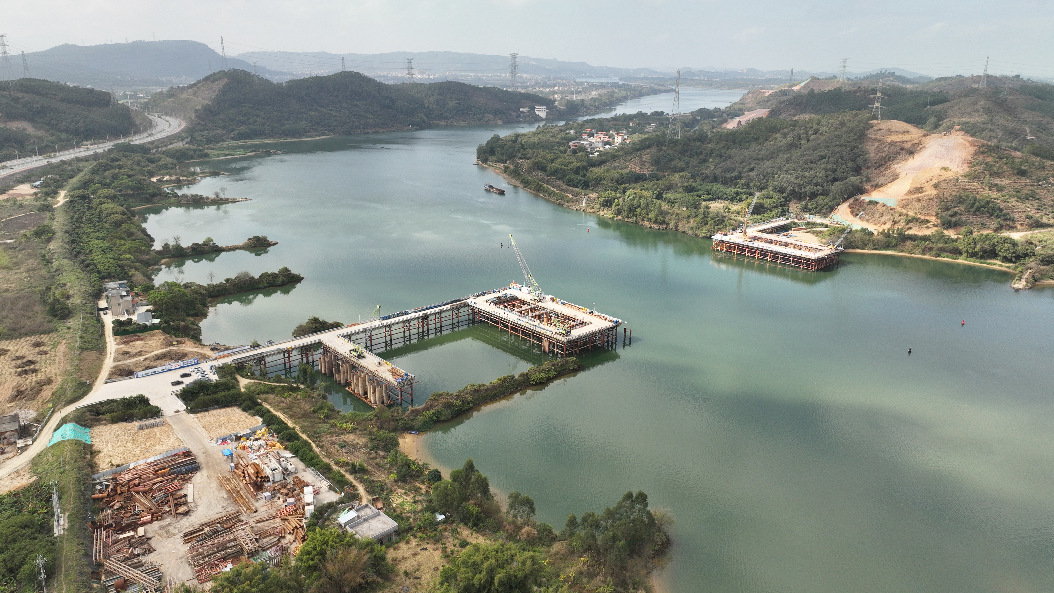 2月18日,惠肇高速控制性工程?hào)|江特大橋緊張施工中。 惠州日?qǐng)?bào)記者鐘暢新 攝
