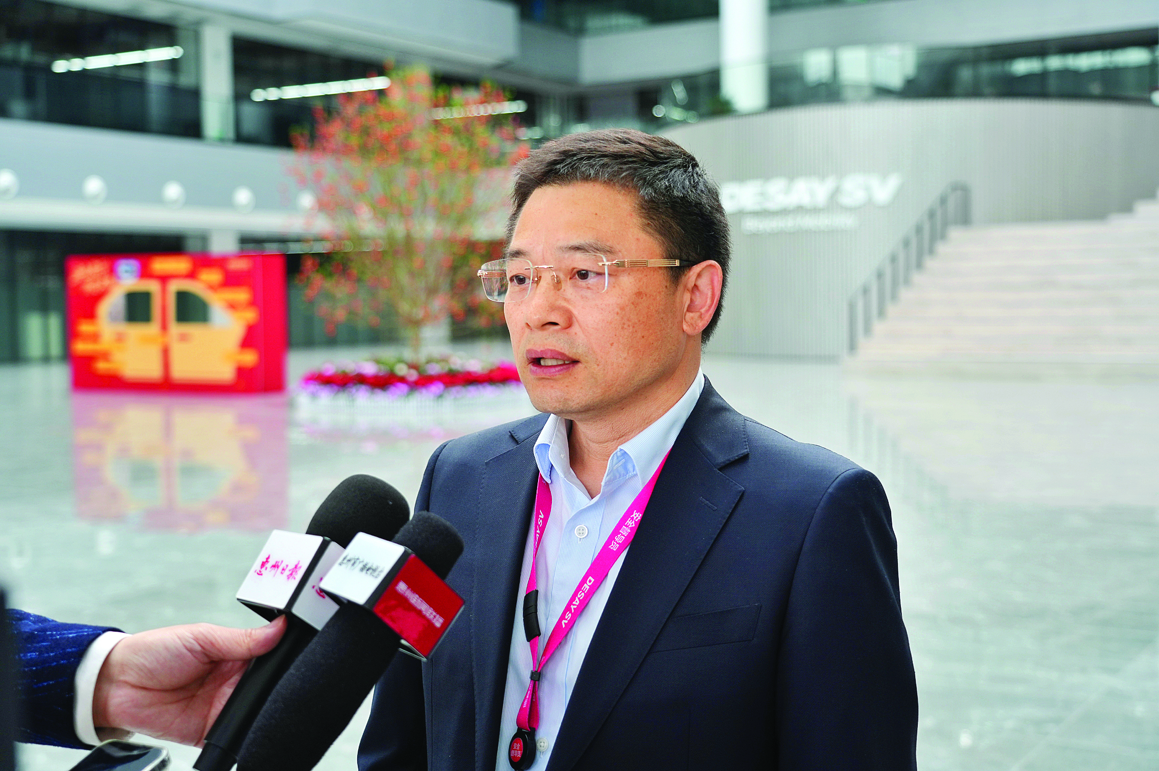 德賽西威執(zhí)行副總裁段擁政接受本報(bào)記者采訪。 惠州日?qǐng)?bào)記者朱金贊 攝