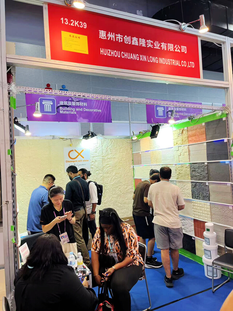 “二期開展的第一天,總體看人氣還不錯,單是上午就接待了10多批客商,而且都比較有采購意向!被葜菔袆(chuàng)鑫隆實業(yè)有限公司是一家主營軟石磚、軟瓷磚等新型建材產(chǎn)品的高新技術(shù)企業(yè),該公司總經(jīng)理唐代全表示,此次展會,公司攜帶了木紋、石紋、竹紋、巖石、編織、水流石等系列的軟石磚共百余款參展,希望能進(jìn)一步開拓海外市場,多簽訂單。