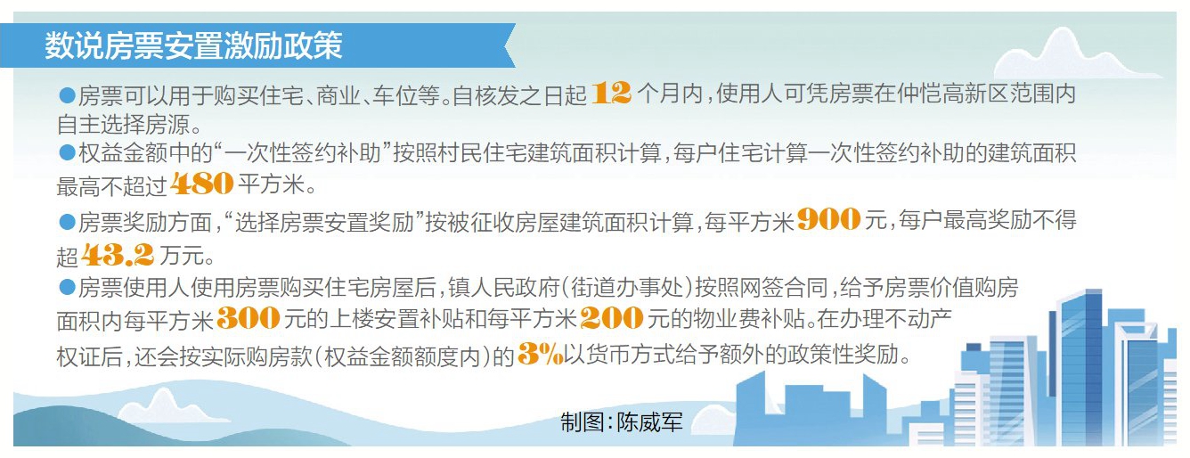 根據(jù)《方案》,房票可以用于購(gòu)買(mǎi)住宅、商業(yè)、車(chē)位等。自核發(fā)之日起12個(gè)月內(nèi),使用人可憑房票在仲愷高新區(qū)范圍內(nèi)自主選擇房源。像李先生持有的首張房票,票面價(jià)值約300萬(wàn)元,該金額由權(quán)益金額和房票獎(jiǎng)勵(lì)構(gòu)成。權(quán)益金額中的“一次性簽約補(bǔ)助”按照村民住宅建筑面積計(jì)算,每戶(hù)住宅計(jì)算一次性簽約補(bǔ)助的建筑面積最高不超過(guò)480平方米。房票獎(jiǎng)勵(lì)方面,“選擇房票安置獎(jiǎng)勵(lì)”按被征收房屋建筑面積計(jì)算,每平方米900元,每戶(hù)最高獎(jiǎng)勵(lì)不得超43.2萬(wàn)元!芭R時(shí)安置補(bǔ)助費(fèi)獎(jiǎng)勵(lì)”按被征收房屋建筑面積一次性獎(jiǎng)勵(lì)12個(gè)月。這就為被征收人提供了更多的選擇與實(shí)惠。