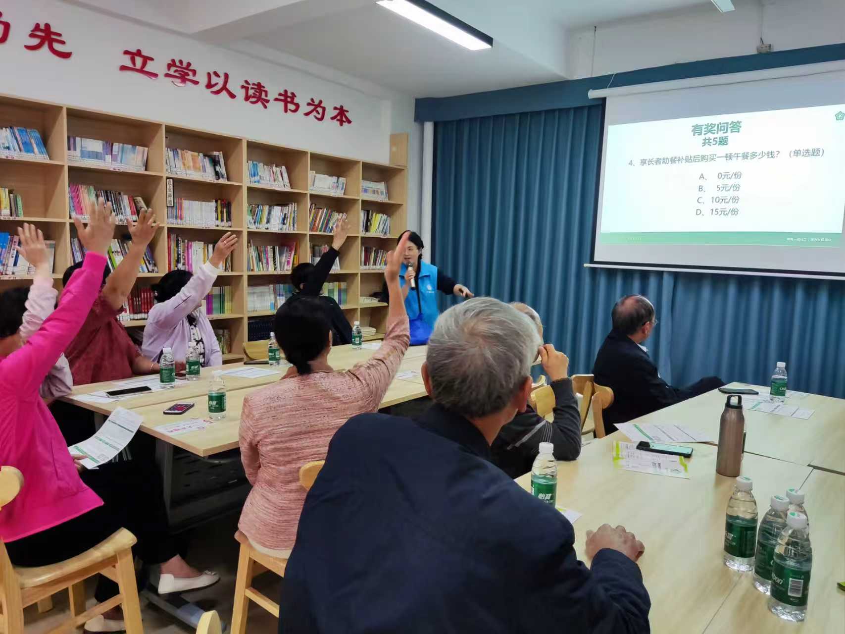 活動伊始,雙百社工精心準備的“銀齡福利知多少”互動課堂贏得了長者們的熱烈歡迎。聚焦養(yǎng)老認證、助餐服務、高齡津貼、適老化改造等老年人最關切的問題,社工們用通俗易懂的方言,配合圖文手冊進行生動解讀,有效掃除了老年人的信息障礙,讓惠民政策真正實現(xiàn)“聽得懂、記得住、用得上”。