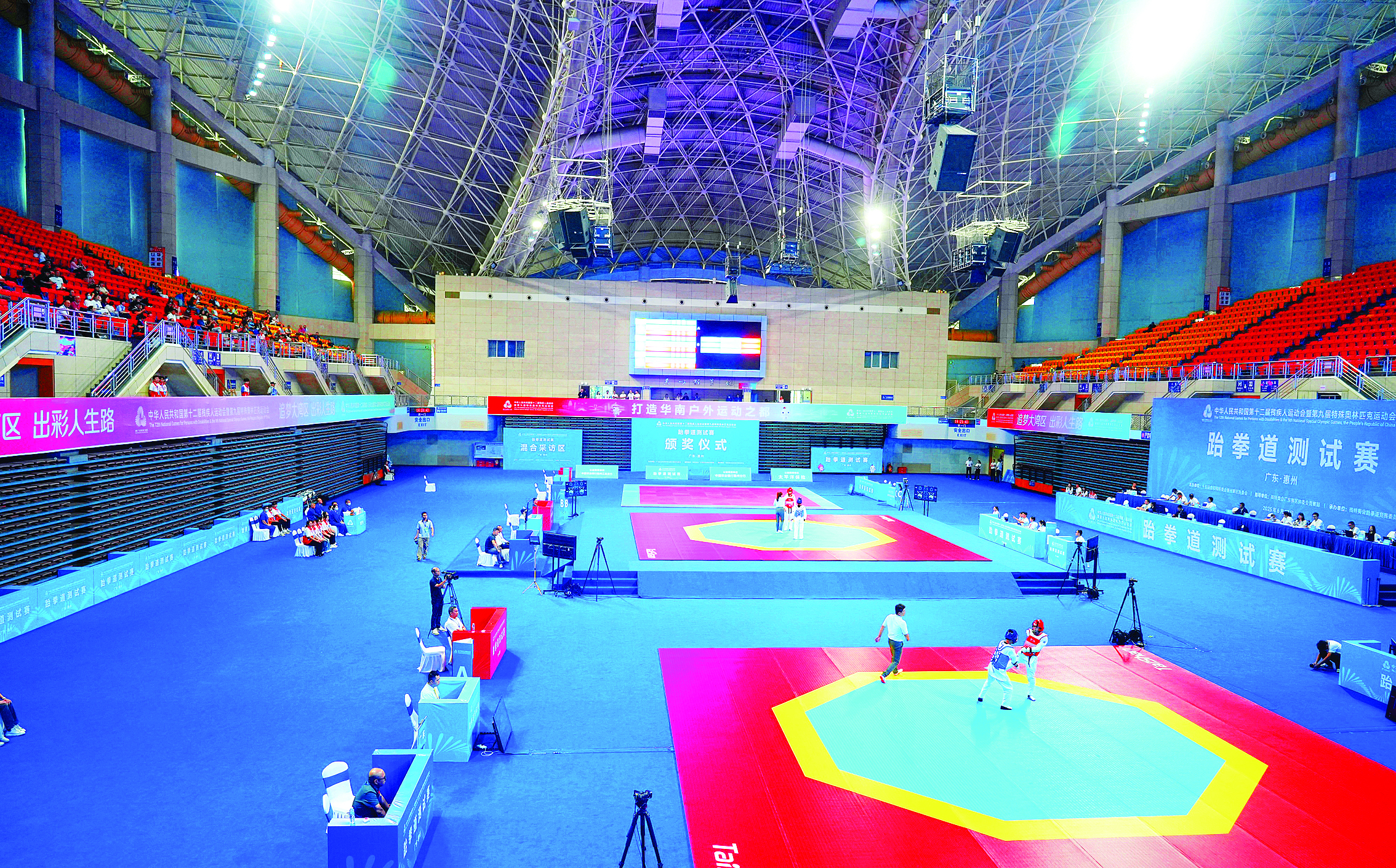 今年6月,惠州成功舉辦殘?zhí)貖W會(huì)跆拳道測(cè)試賽。惠州東江圖片社供圖