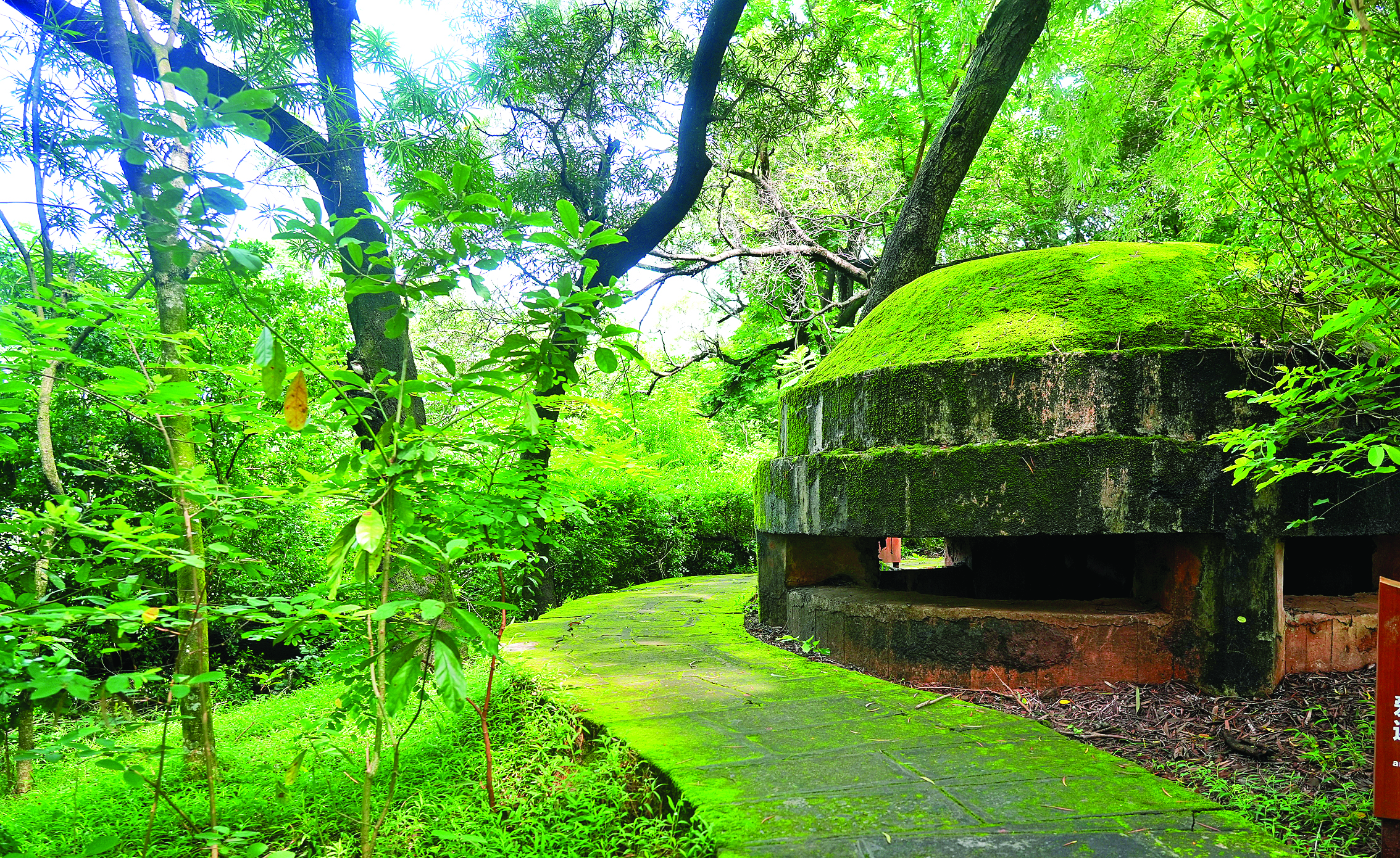 飛鵝嶺上,仍完整保存著碉堡、戰(zhàn)壕與機槍掩體等遺跡,指尖觸摸已被青苔覆蓋的碉堡石壁,仿佛還能感知到當(dāng)年槍管灼燙的余溫。