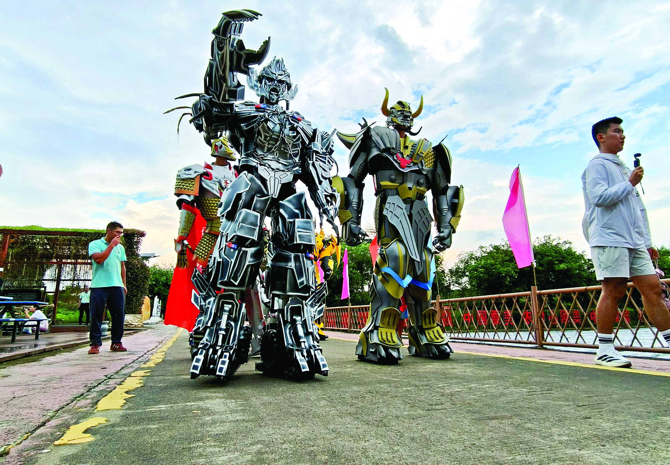 大黃蜂、擎天柱、威震天、鋼鐵俠……10月1日~8日,廣東航天農(nóng)業(yè)科技生態(tài)園將開展“未來紀(jì)元·AI機(jī)甲嘉年華”活動,大型實(shí)動機(jī)甲秀將伴游人過假期。屆時,整個景區(qū)將重構(gòu)為“AI機(jī)甲基地+航天基地”,引入兩三米高的大型可動機(jī)甲,實(shí)現(xiàn)與游客真實(shí)互動。記者了解到,大型可動機(jī)甲由專業(yè)演員穿上機(jī)甲服扮演,有大小不同造型50多種。此次大型實(shí)動機(jī)甲秀分晝夜雙模式。白天,科技沉浸互動體驗(yàn);夜晚,機(jī)甲幻境舞蹈狂歡,燈光秀流光溢彩。景區(qū)晚上還有昆蟲燈光秀,有鳥兒、小昆蟲、蝴蝶等多種動物造型燈,配上音樂和動物的模擬聲音,將更加精彩靈動。