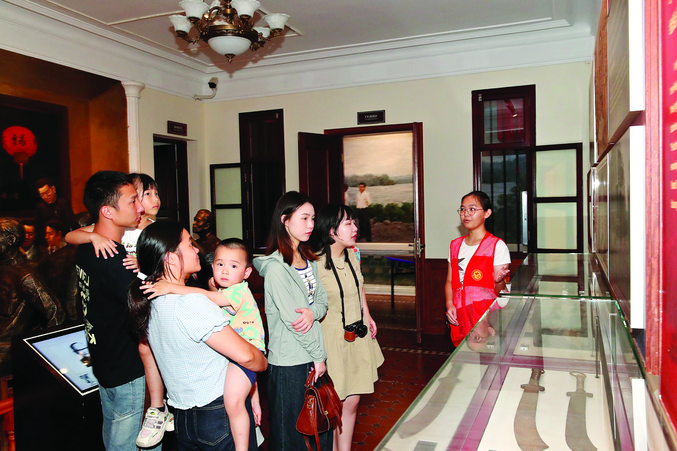 10月1日,來自四面八方的游客陸續(xù)來到葉挺紀念館參觀,其中不少家庭組團前來。葉挺紀念館里陳列珍貴的文物和照片,并采用新媒體多視角、多維度地全面展示葉挺將軍的革命事跡和風采,讓游客有更好的觀展體驗和舒適度。