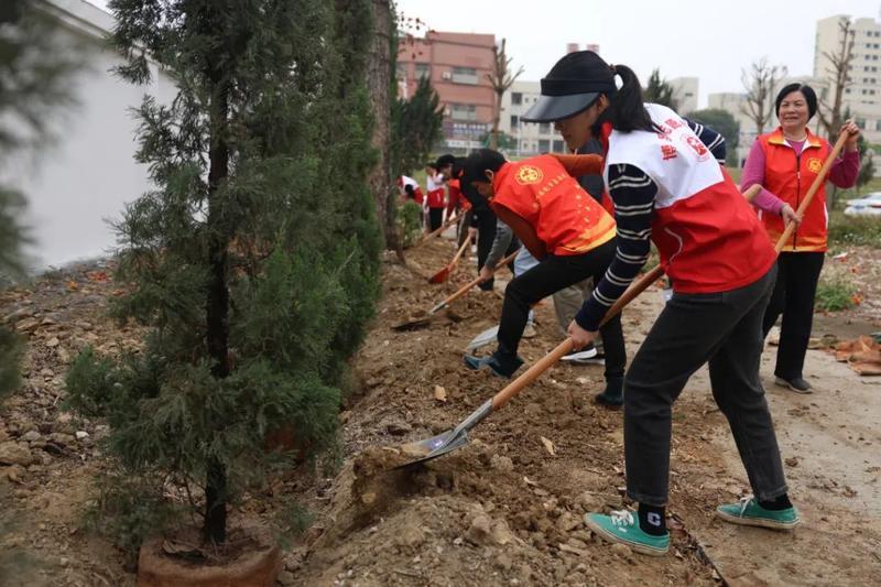 干群齊心協(xié)力添新綠;葜萑請(bào)記者朱麗婷 通訊員園洲宣 攝