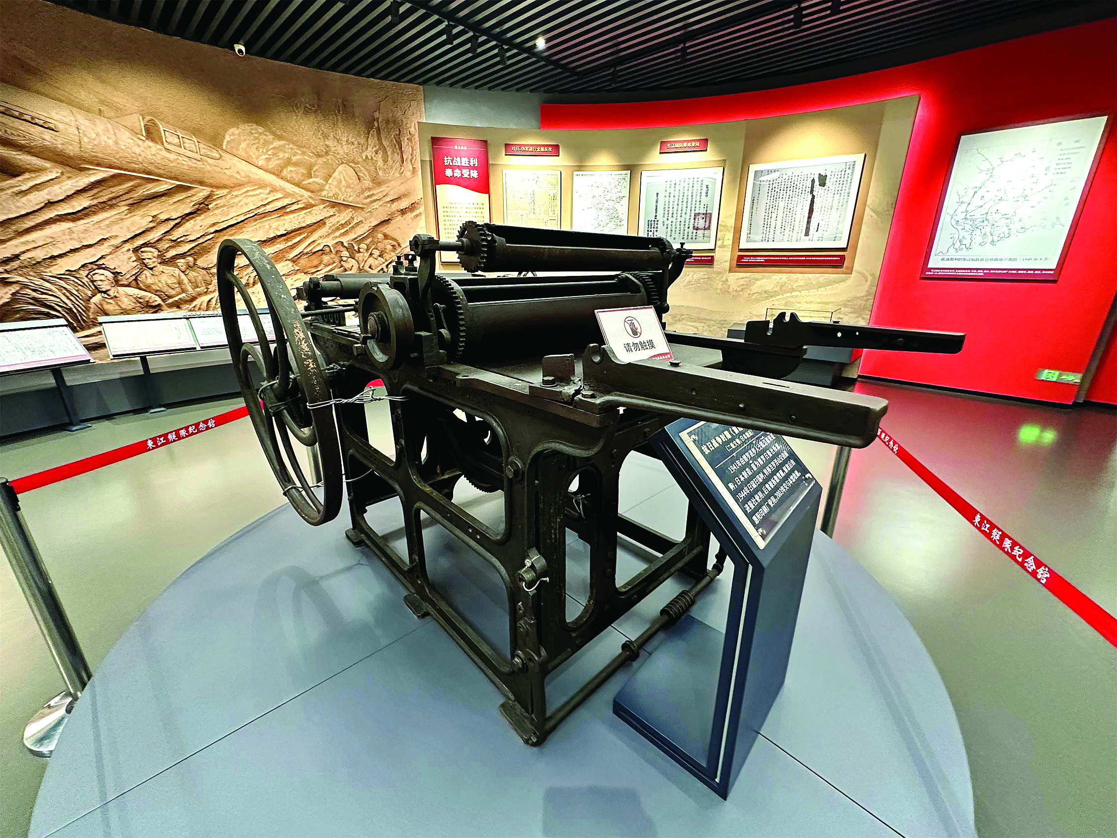 在東江縱隊紀(jì)念館內(nèi),一臺重達(dá)千斤、通體黝黑的印刷機(jī)格外引人注目。這是曾經(jīng)印制東江縱隊機(jī)關(guān)報《前進(jìn)報》的印刷機(jī),是該館的“鎮(zhèn)館之寶”、國家二級文物,更是東江縱隊在艱苦環(huán)境中堅持文化抗戰(zhàn)的生動見證。如今,這臺印刷機(jī)依舊锃亮,仿佛在告訴每一位參觀者:鉛字與子彈一樣,可以擊穿黑暗。