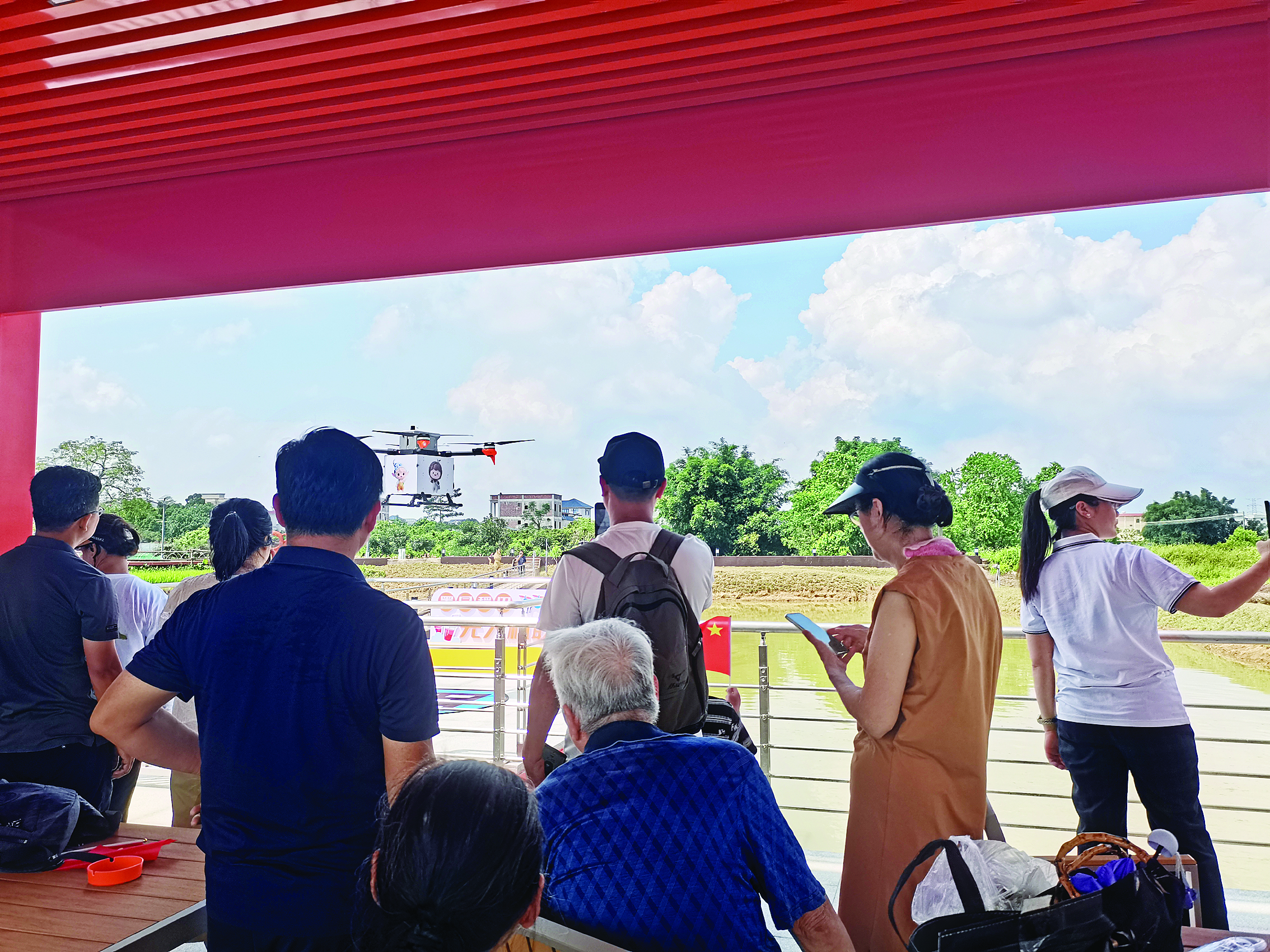 惠城區(qū)百年古村落墨園村集觀景、科技、主題互動于一體的稻田無人機觀景臺及稻草人主題區(qū)近日對外營業(yè),不少游客爭相體驗“無人機送咖”。