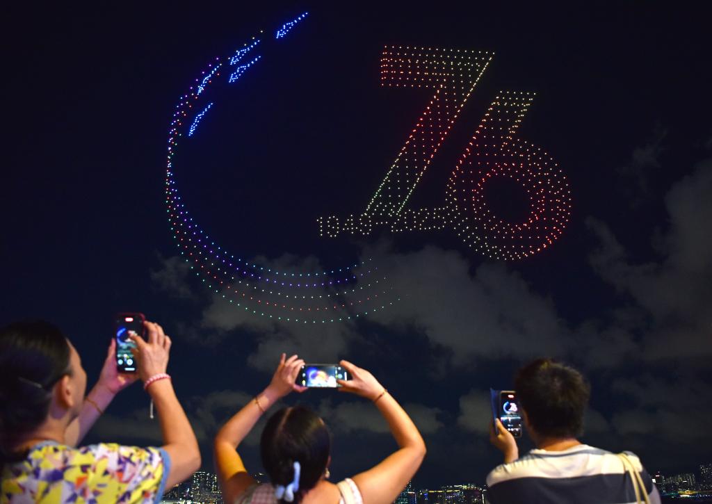 10月2日,香港舉行大型無人機(jī)匯演,慶祝中華人民共和國成立76周年。新華社記者 陳鐸 攝