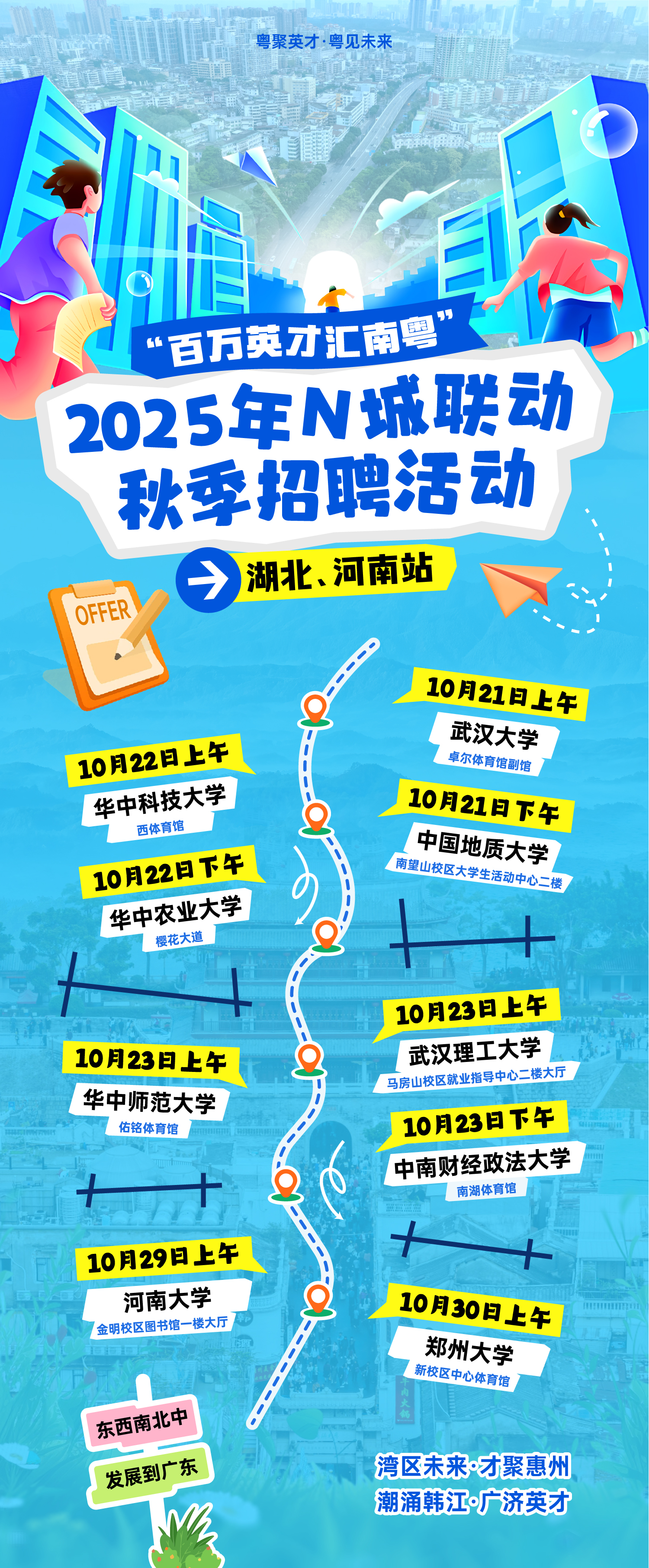 還在重復(fù) “海投簡歷石沉大海” 的循環(huán)?想扎根經(jīng)濟活力滿滿的廣東,卻愁沒機會對接優(yōu)質(zhì)企業(yè)?別慌!10月21日起,“百萬英才匯南粵” 2025年N城聯(lián)動秋季招聘直接“空投”到鄂豫9所雙一流高校,好工作、貼心福利,全給安排上!