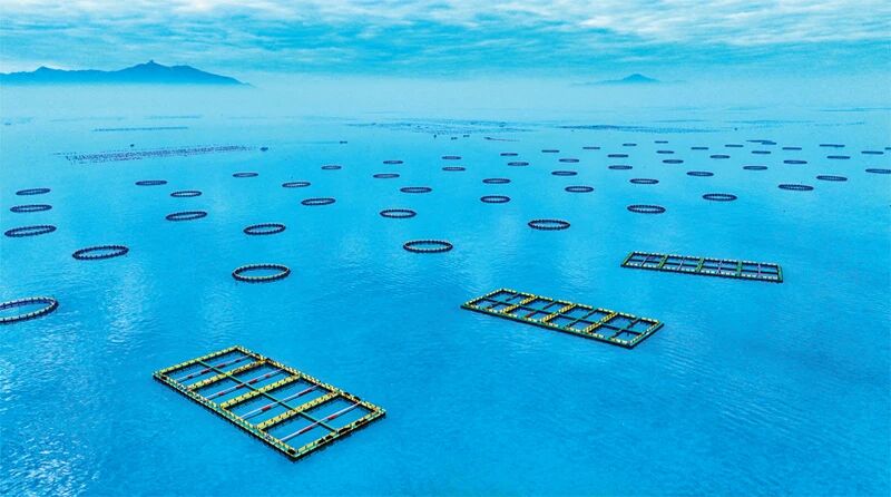 在“百千萬(wàn)工程”實(shí)施過(guò)程中,廣東引導(dǎo)各地“靠山唱山歌、靠海念海經(jīng)”,因地制宜發(fā)展壯大縣域特色產(chǎn)業(yè)。潮州市饒平縣探索“良種場(chǎng)+企業(yè)+農(nóng)戶(hù)”模式,大力建設(shè)現(xiàn)代化海洋牧場(chǎng),將海洋資源優(yōu)勢(shì)轉(zhuǎn)化為經(jīng)濟(jì)發(fā)展動(dòng)能。圖為2024年6月拍攝的饒平縣重力式深水網(wǎng)箱養(yǎng)殖基地。 廣東省潮州市饒平縣“百千萬(wàn)工程”指揮部辦公室供圖