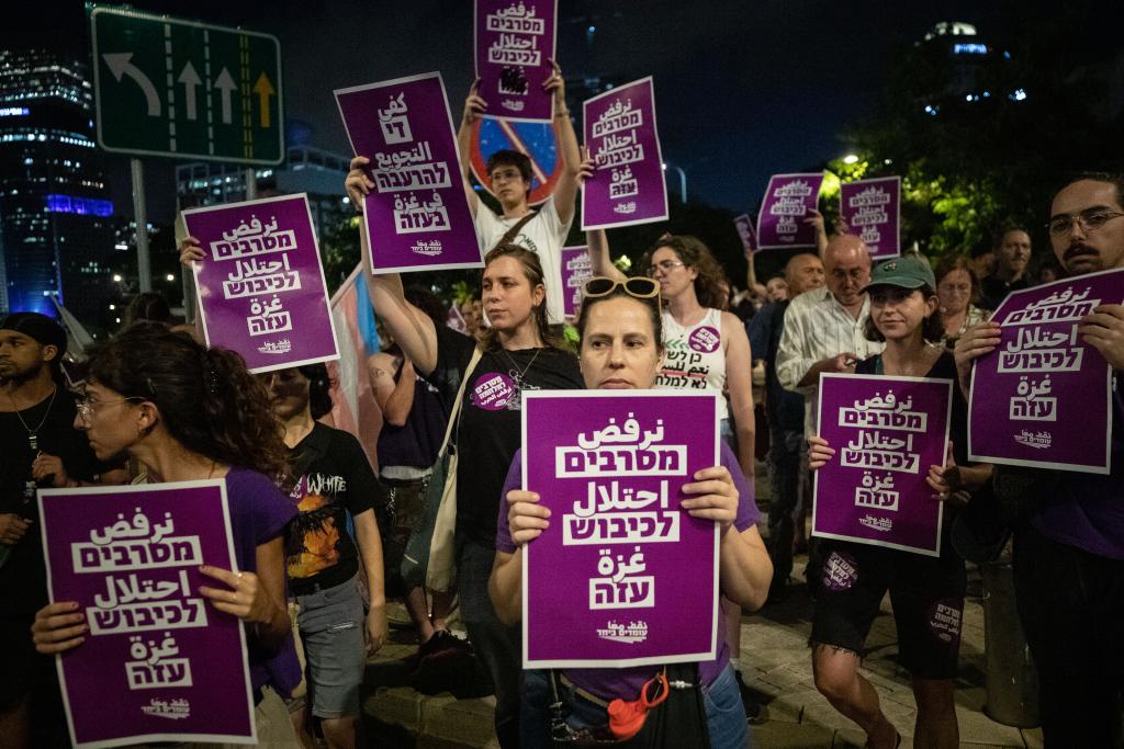 8月17日晚,人們?cè)谝陨兄胁砍鞘刑乩S夫的以色列國(guó)防部大樓附近參加游行示威活動(dòng),敦促以政府盡快與哈馬斯達(dá)成;饏f(xié)議,讓所有被扣押人員獲釋。新華社記者陳君清攝