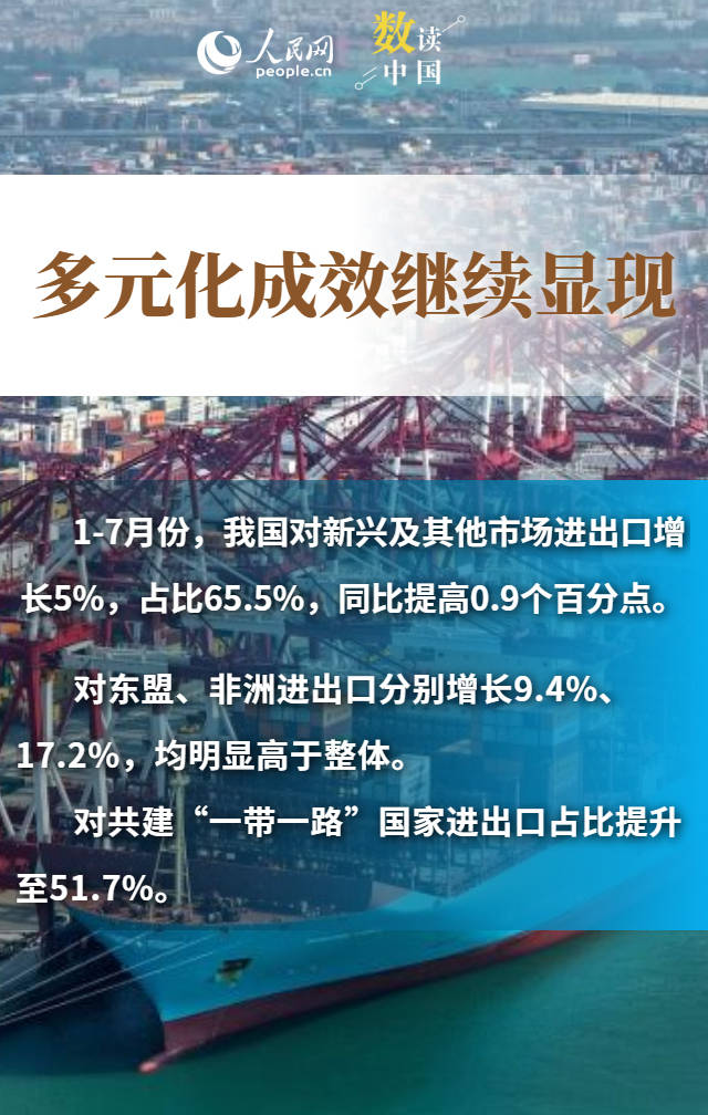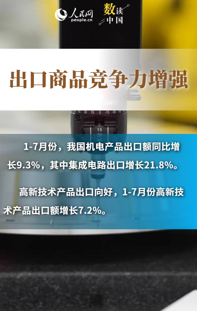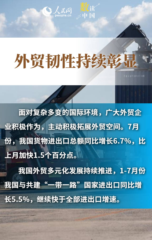 進(jìn)出口規(guī)模創(chuàng)歷史新高、“朋友圈”不斷擴(kuò)大、民營企業(yè)持續(xù)創(chuàng)新……數(shù)據(jù)顯示,今年前7個(gè)月,我國貨物貿(mào)易進(jìn)出口總值25.7萬億元,同比增長3.5%。在外部挑戰(zhàn)之下,我國貨物進(jìn)出口持續(xù)增長,展現(xiàn)出較強(qiáng)韌性和活力,為世界經(jīng)濟(jì)復(fù)蘇注入了中國力量。