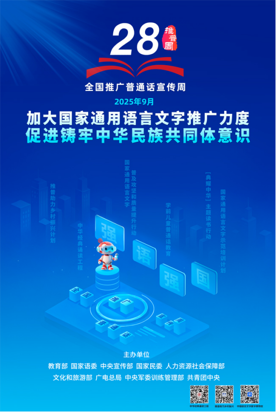 經(jīng)國務院批準,自1998年起,每年9月第三周為全國推廣普通話宣傳周。今年9月15日至9月21日是第28屆全國推廣普通話宣傳周,主題為“加大國家通用語言文字推廣力度,促進鑄牢中華民族共同體意識”。