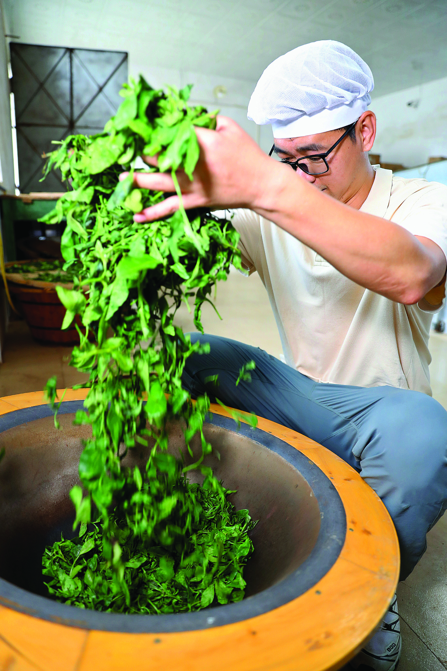 滾燙的殺青鍋熱氣蒸騰,一捧鮮嫩的茶青傾入,“滋啦”聲驟響,濃郁青草氣瞬間升騰彌漫……在仲愷高新區(qū)潼僑鎮(zhèn)的老茶廠內(nèi),負(fù)責(zé)人吳遠(yuǎn)波雙臂在近280攝氏度高溫的鐵鍋中翻飛,用手掌精準(zhǔn)感知著火候的微妙變化。鮮葉在他手中抖撒、翻動(dòng),青澀氣漸褪。吳遠(yuǎn)波專注的神情,無(wú)聲述說(shuō)著對(duì)傳統(tǒng)制茶技藝的堅(jiān)守。
