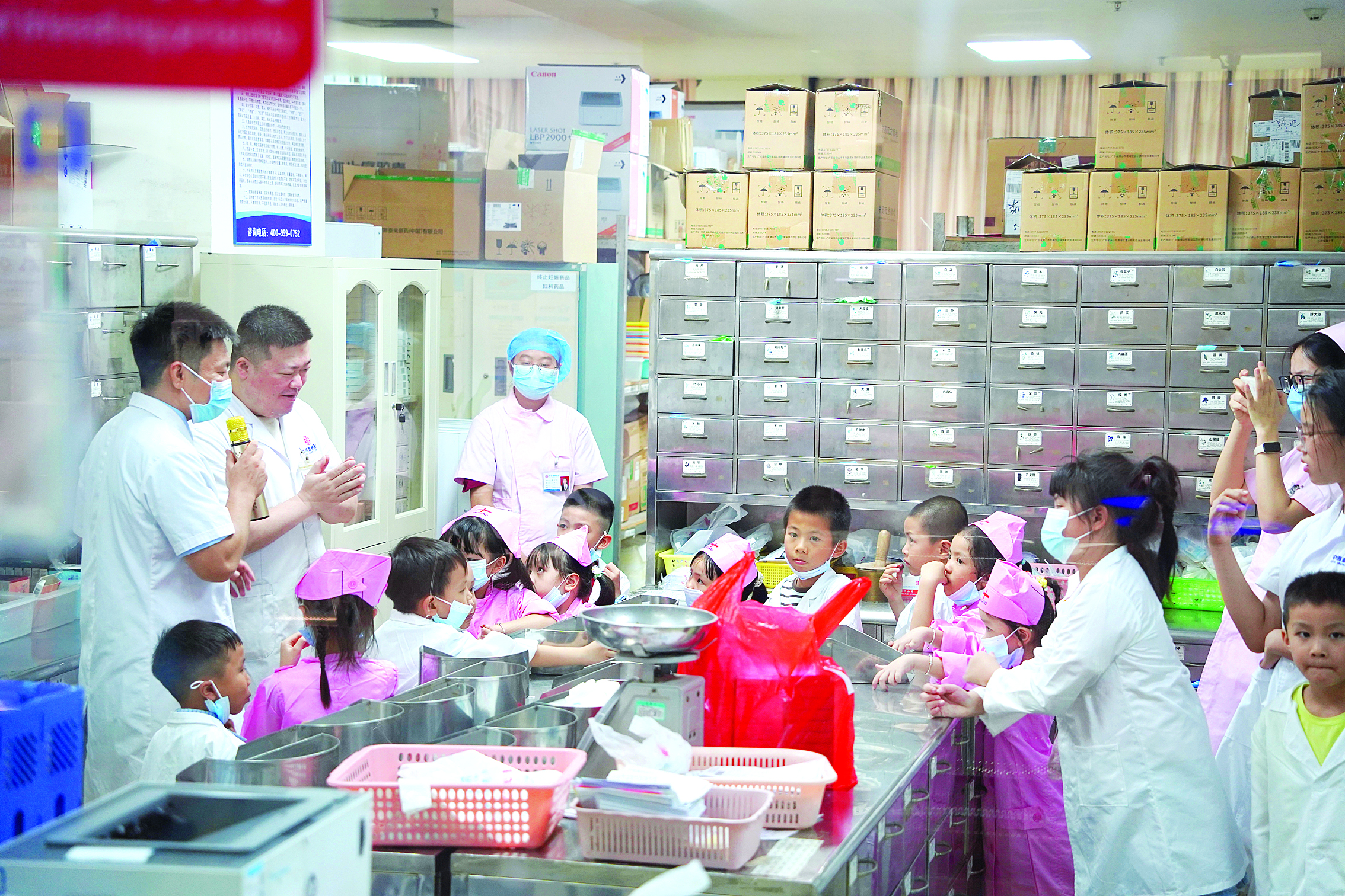 研學(xué)最后一站落腳中信惠州醫(yī)院,“職業(yè)體驗(yàn)”成為活動的最大亮點(diǎn)。小朋友們換上白大褂,化身“小醫(yī)生”“小護(hù)士”,學(xué)習(xí)傷口清潔、包扎技巧,還在中藥房學(xué)習(xí)辨識常見中藥材。“以前怕去醫(yī)院,現(xiàn)在知道了醫(yī)生叔叔護(hù)士阿姨的工作有多重要!背两襟w驗(yàn)讓健康意識與醫(yī)學(xué)認(rèn)知深深扎根在孩子們心中。