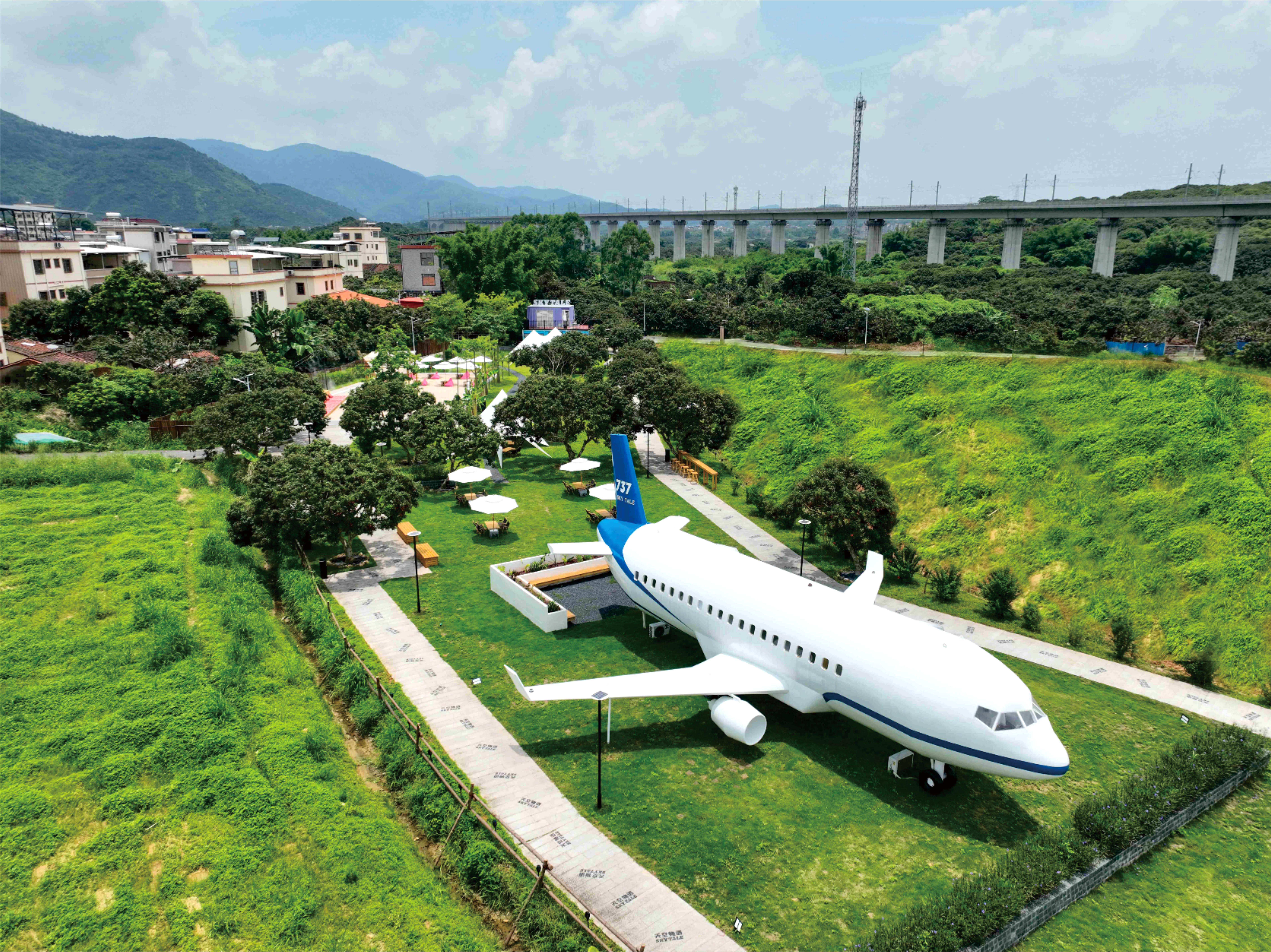 在君子營村紫蕓里·星野田園,一個按波音737飛機等比例復(fù)刻的模型餐廳——“飛機餐廳”成為視覺焦點,吸引眾多游客駐足打卡。據(jù)項目運營方介紹,該項目總投資140萬元,由村強村公司與惠州鄉(xiāng)野文旅產(chǎn)業(yè)有限公司合作運營,預(yù)計每年可為村集體增收約20萬元!懊康街苣,不少游客專程前來拍照打卡,親子家庭、企業(yè)團建團隊也絡(luò)繹不絕,大家在這里盡享田園慢生活!