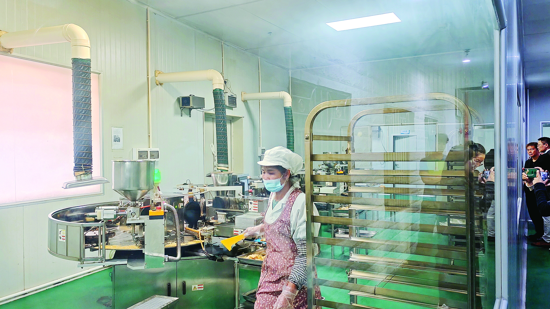 深圳企業(yè)家參觀石壩蛋卷加工車間。