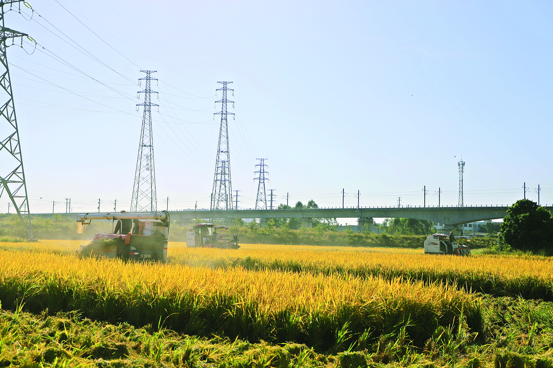 博羅不僅守住田的數(shù)量,還讓農(nóng)田的質(zhì)量更好。石灣鎮(zhèn)黃西村現(xiàn)有耕地提質(zhì)改造項目入選廣東第二屆墾造水田十大典型案例。8月初,在博羅縣石灣鎮(zhèn)伴永康優(yōu)質(zhì)絲苗米種植基地內(nèi),收割機在金黃的稻浪中穿梭,金黃的稻谷通過輸送管直接裝入運糧車……今年,該基地種植的“南晶香占”絲苗米,畝產(chǎn)約440公斤。