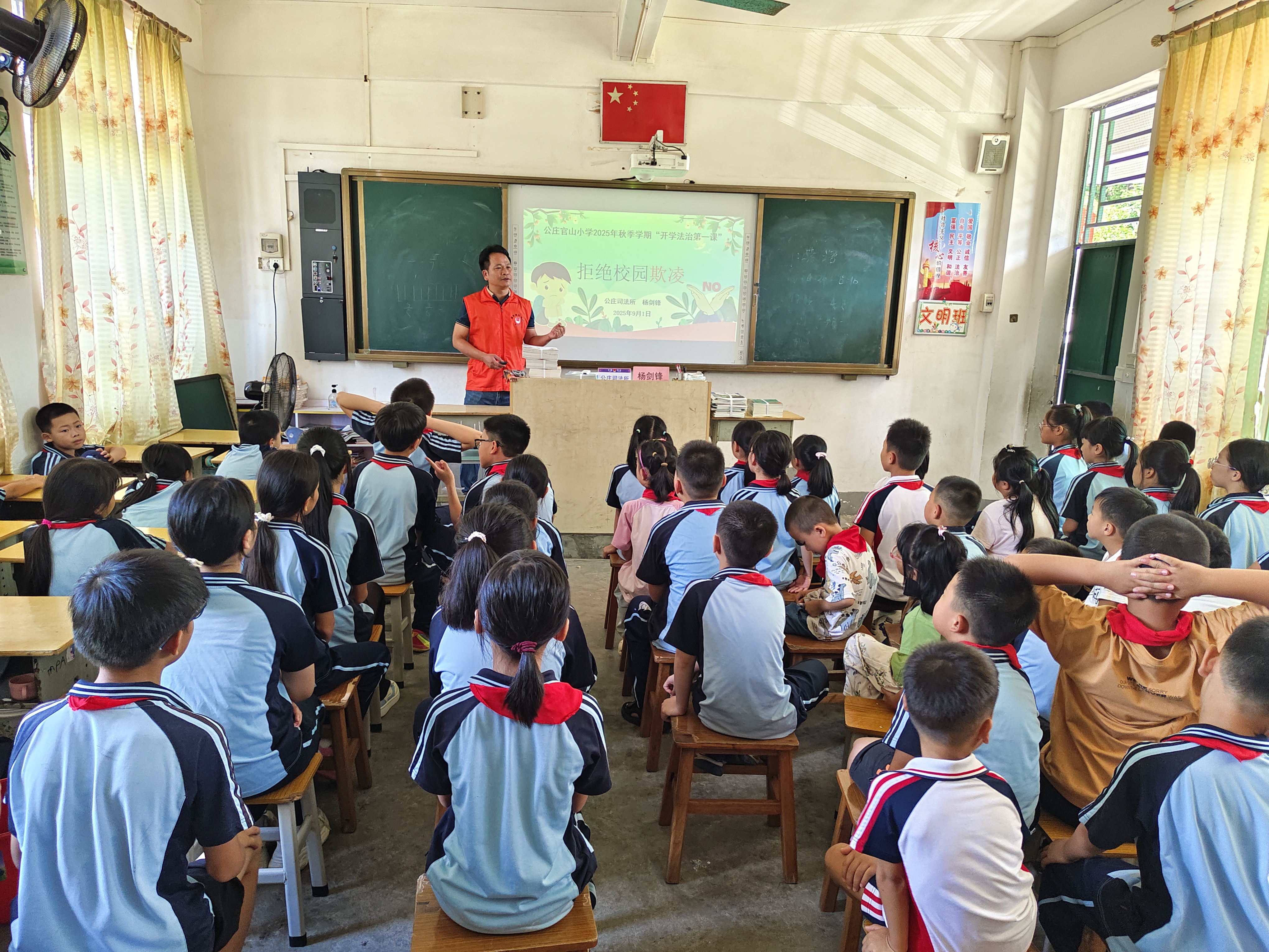 各基層司法所也積極響應(yīng)。9月1日,公莊司法所負(fù)責(zé)人、官山小學(xué)法治副校長楊劍鋒走進(jìn)學(xué)校,以《拒絕校園欺凌》為主題,通過典型案例剖析校園欺凌類型、危害,系統(tǒng)講解預(yù)防機(jī)制及應(yīng)對策略,為新學(xué)年師生劃清行為邊界,構(gòu)筑校園安全法治防線。