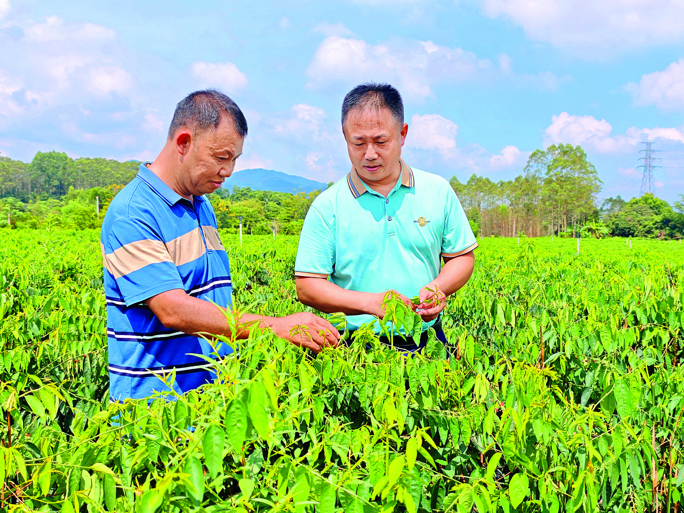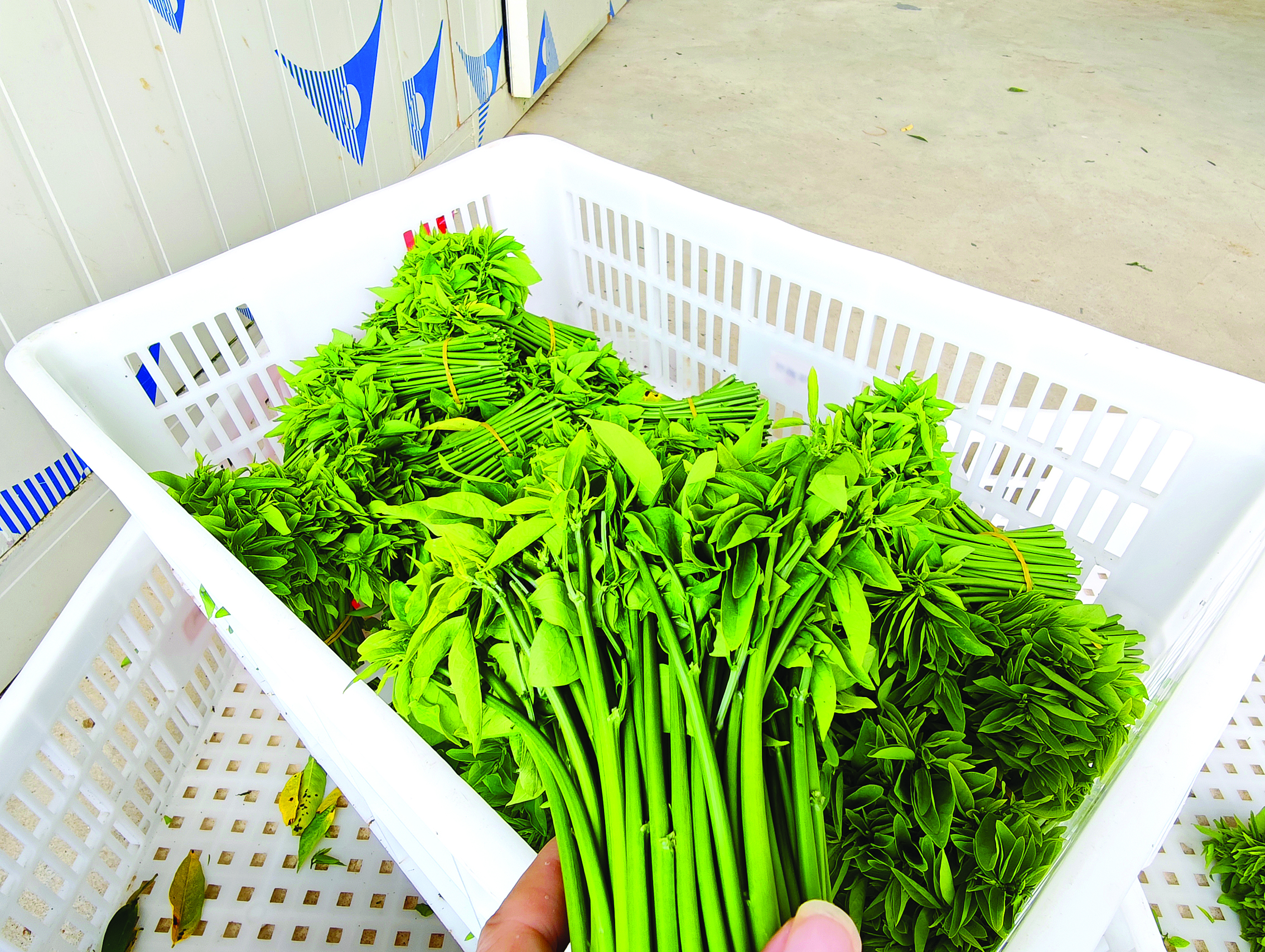 2024年初,一次外地調研讓他與“樹仔菜”結緣。樹仔菜也叫天綠香、五指山野菜等,是一種常綠灌木,以嫩梢為食用部位,故得名。近年來,樹仔菜成為珠三角餐飲市場的“寵兒”,不僅價格堅挺、需求旺盛,而且生長快、產量穩(wěn),更與新塘村的土壤氣候高度契合!斑@不就是為新塘村量身定制的‘致富菜’!”鐘建周眼前一亮。