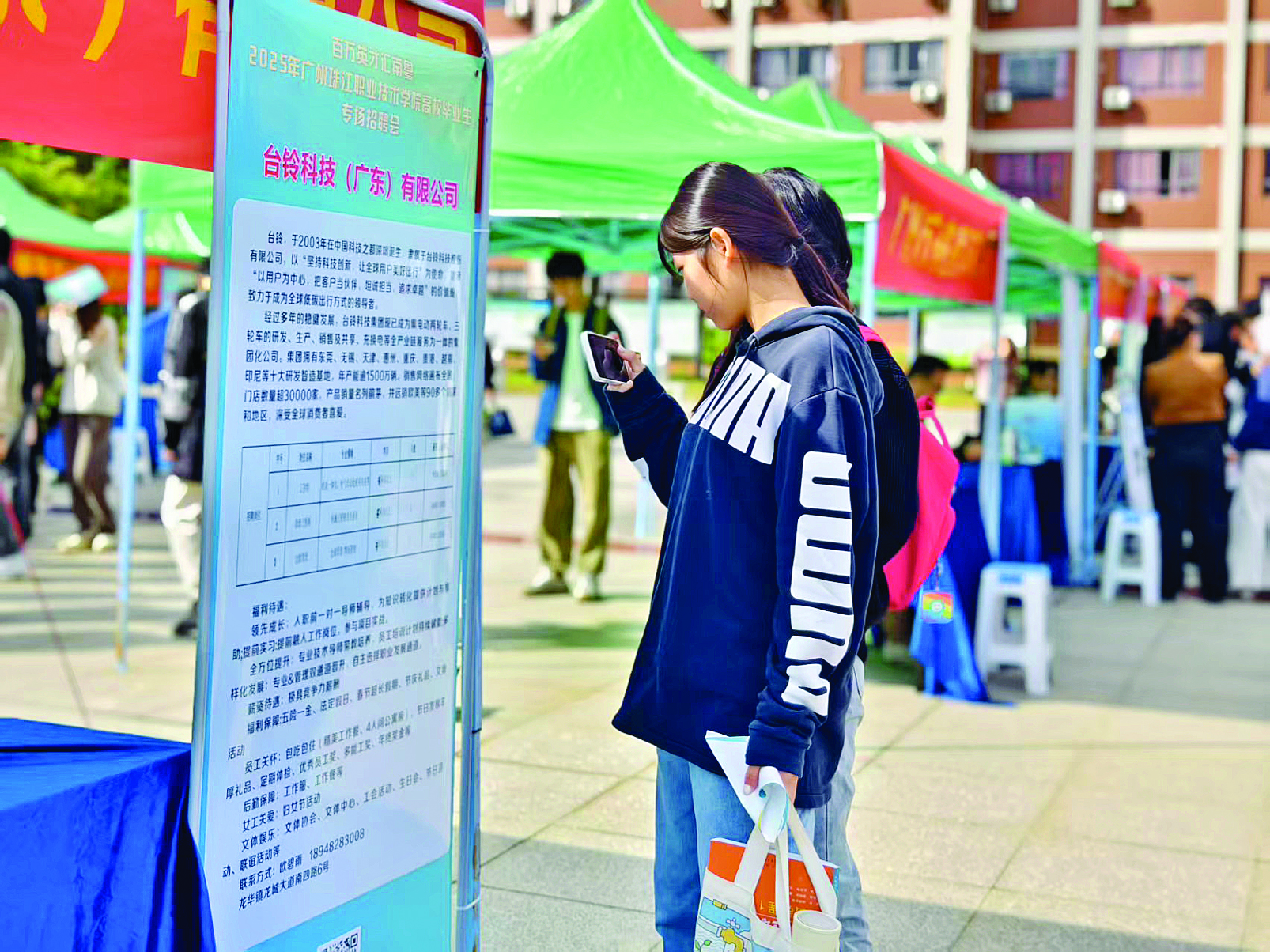 招聘會現(xiàn)場一派火熱景象,各家企業(yè)的展板清晰標(biāo)注崗位需求、任職要求與薪資福利等信息。明年將畢業(yè)的大學(xué)生王佐耀在多個企業(yè)展位間對比崗位,“不用出校門,就能參加匯集這么多企業(yè)的招聘會,非常方便!面對面交流能更清楚了解企業(yè)情況,崗位選擇多,也比較靠譜。”臺鈴科技(廣東)有限公司招聘主管歐碧雨介紹,該公司急需機(jī)電一體化等方面的人才,已與多個求職者達(dá)成初步意向:“專業(yè)匹配度和學(xué)生綜合素質(zhì)都符合預(yù)期。”