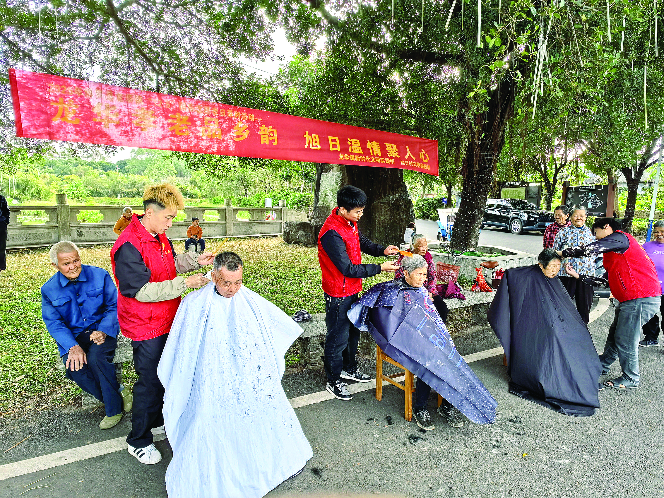 旭日村青年回村給老人義剪。 惠州日?qǐng)?bào)記者李燕文 攝