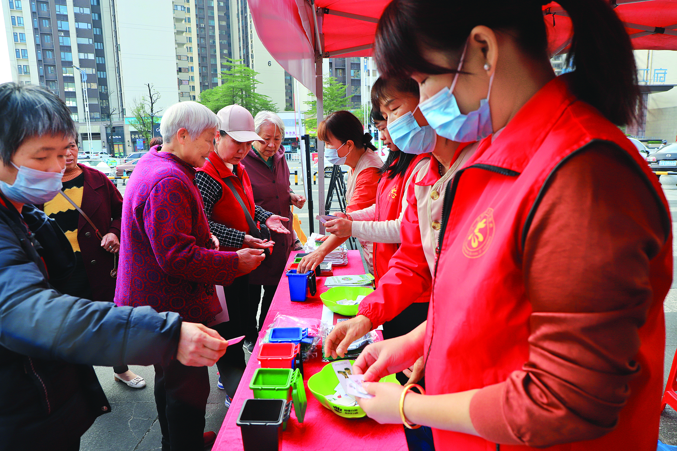 志愿者通過(guò)小游戲宣傳垃圾分類知識(shí)。