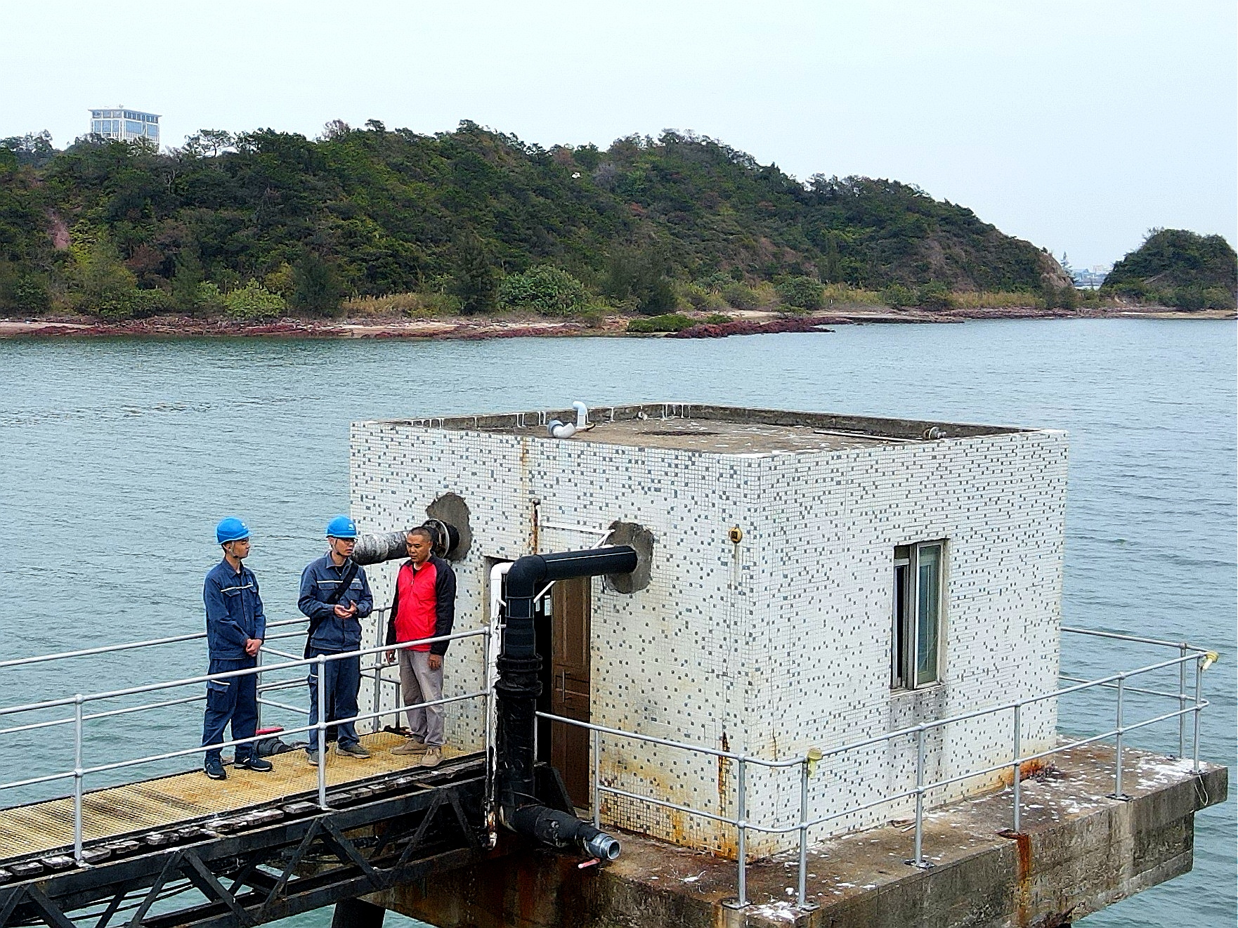 惠州大亞灣供電局客戶(hù)經(jīng)理向海洋漁業(yè)試驗(yàn)基地工作人員了解科研用電情況。