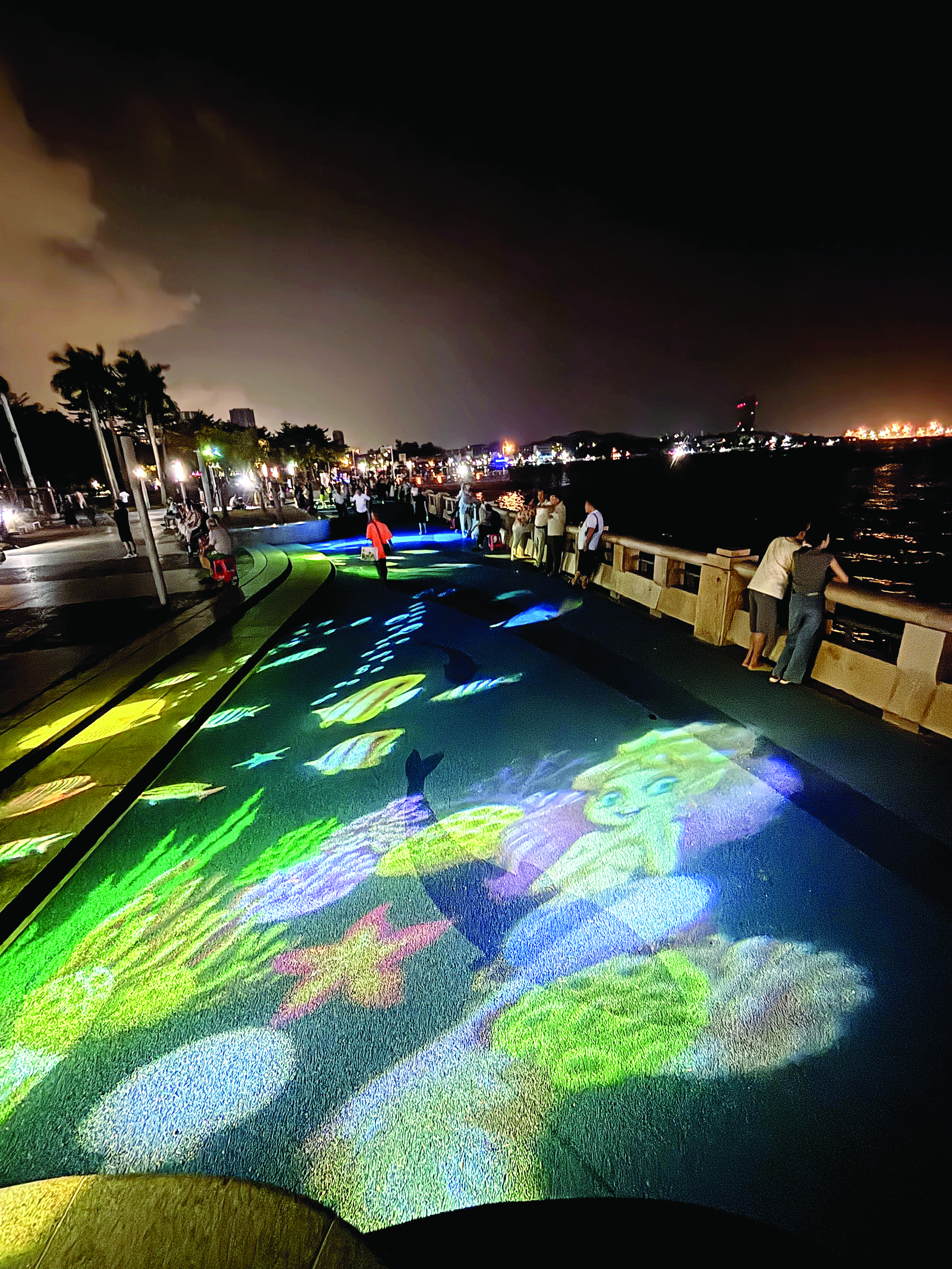 如今,漫步在公園的小徑上,仿佛踏上夢(mèng)幻的海底探險(xiǎn)之旅。嬌俏可愛(ài)的美人魚(yú)、色彩斑斕的熱帶魚(yú)、輕盈飄動(dòng)的水草、波光粼粼的海浪……加上氛圍燈,營(yíng)造出一個(gè)豐富多彩的海底世界。