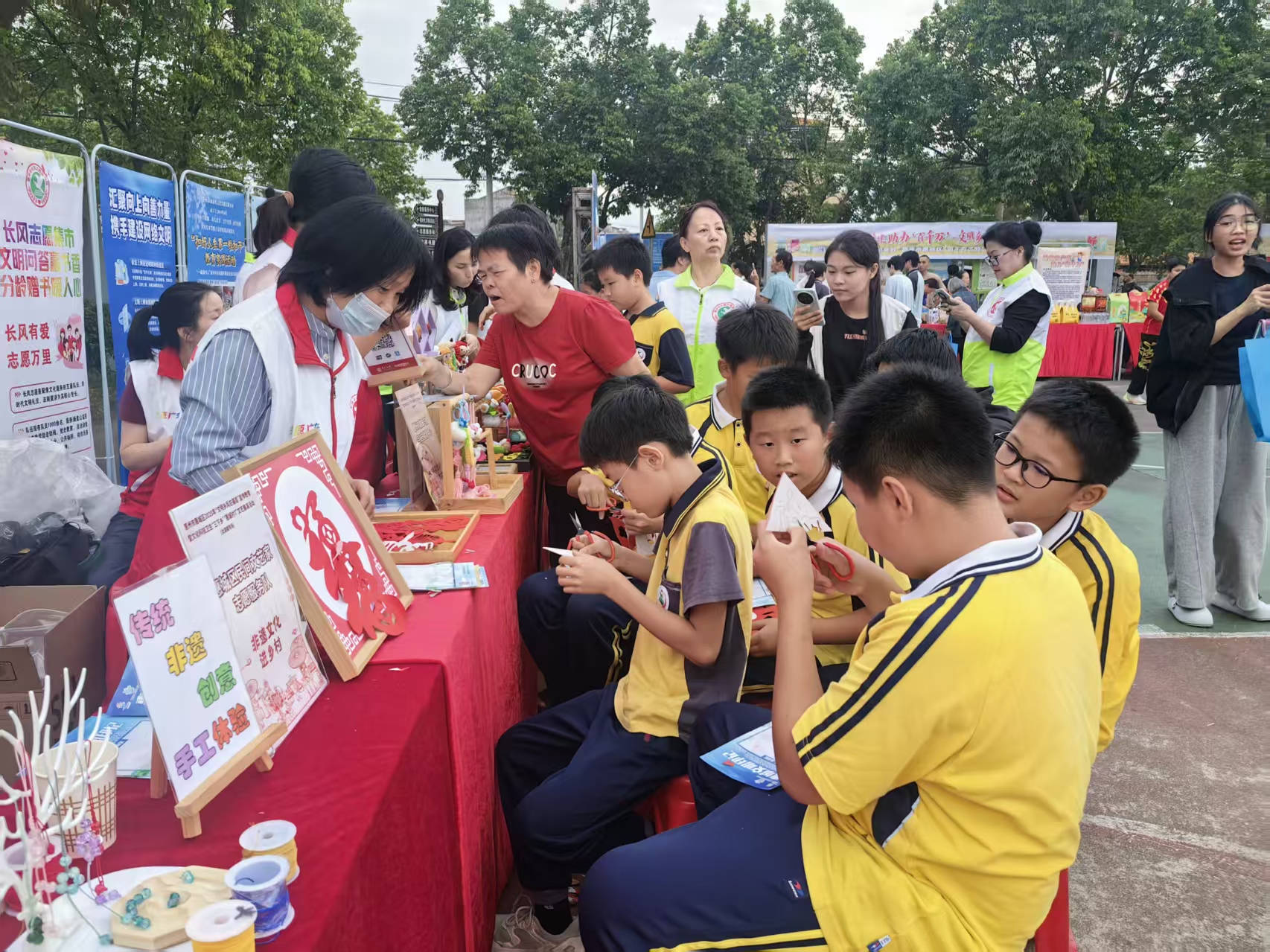 集市還設(shè)有豐富多彩的體驗(yàn)互動(dòng)區(qū),吸引不同年齡層的村民積極參與。在全民閱讀區(qū),加速度志愿服務(wù)隊(duì)帶來各類書籍,鼓勵(lì)未成年人養(yǎng)成閱讀習(xí)慣,“扣好人生第一?圩印;手工技藝體驗(yàn)區(qū),來自鵝城巧娘手工藝發(fā)展中心、惠城區(qū)民間文藝家協(xié)會(huì)的志愿者現(xiàn)場(chǎng)展示編織技藝、非遺剪紙、手工拓印等傳統(tǒng)手工藝,吸引眾多婦女和兒童動(dòng)手體驗(yàn)……