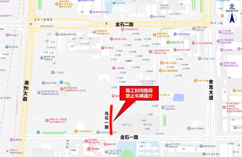 12月5日,記者從市公安局交管支隊(duì)獲悉,12月6日起至施工結(jié)束(共約60天),惠城區(qū)烏石一路(騰盛大廈西側(cè)路段,共約156米)臨時(shí)封閉,禁止車輛通行。車輛請(qǐng)通過周邊金石一路、金石二路、惠州大道、金龍大道等道路繞行。