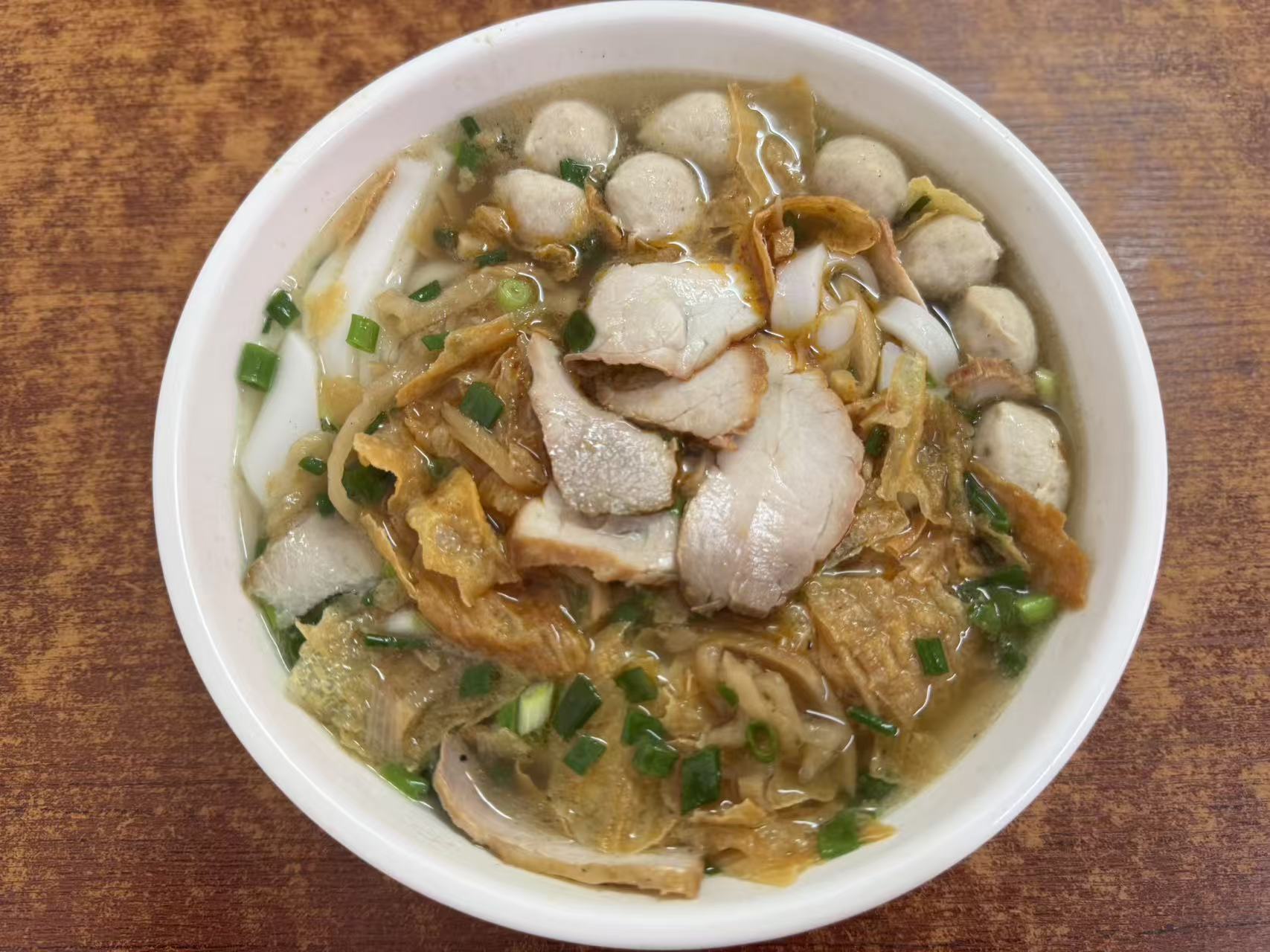 高潭湯粉是當(dāng)?shù)刈罹邿熁饸獾娜粘V魇持,湯色清亮卻滋味醇厚,骨香與肉鮮層層交織,入口鮮而不膩。粉選用當(dāng)?shù)厥止ぶ谱鞯暮臃,口感柔韌彈牙,久泡不爛。上桌時(shí),師傅會(huì)先盛入滾燙的清湯,加入肉丸、菜圃、炸腐竹皮,再鋪上薄切的叉燒。這碗看似樸素的湯粉,既是高潭人從小吃到大的家鄉(xiāng)味道,也是游子歸鄉(xiāng)時(shí)必打卡的“舌尖鄉(xiāng)愁”。