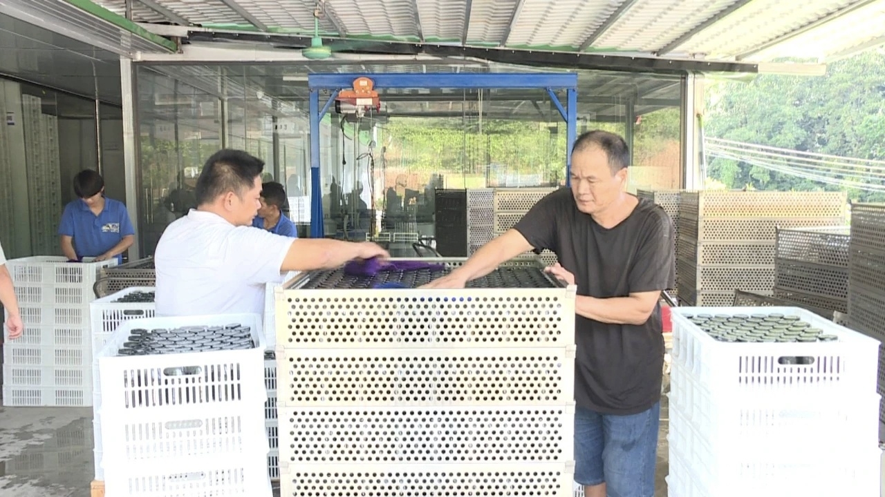 劉明輝介紹,其目前生產(chǎn)的龜苓膏是采用8至15年以上的老龜龜板,搭配純中藥精心熬制而成。制作過程中僅放入中藥,經(jīng)8小時(shí)慢火熬制成龜膠,再調(diào)味制成龜苓膏。劉明輝介紹,依托優(yōu)質(zhì)水源和政府支持,企業(yè)將產(chǎn)品單價(jià)從30元降至10元,推出三檔產(chǎn)品,日產(chǎn)量達(dá)9600瓶,銷往全國(guó)。如今,呂屋坪村的“石金錢龜”龜苓膏產(chǎn)業(yè)已結(jié)出豐碩成果,這條特色產(chǎn)業(yè)發(fā)展之路,不僅盤活了荒山資源,更帶動(dòng)了村民增收。
