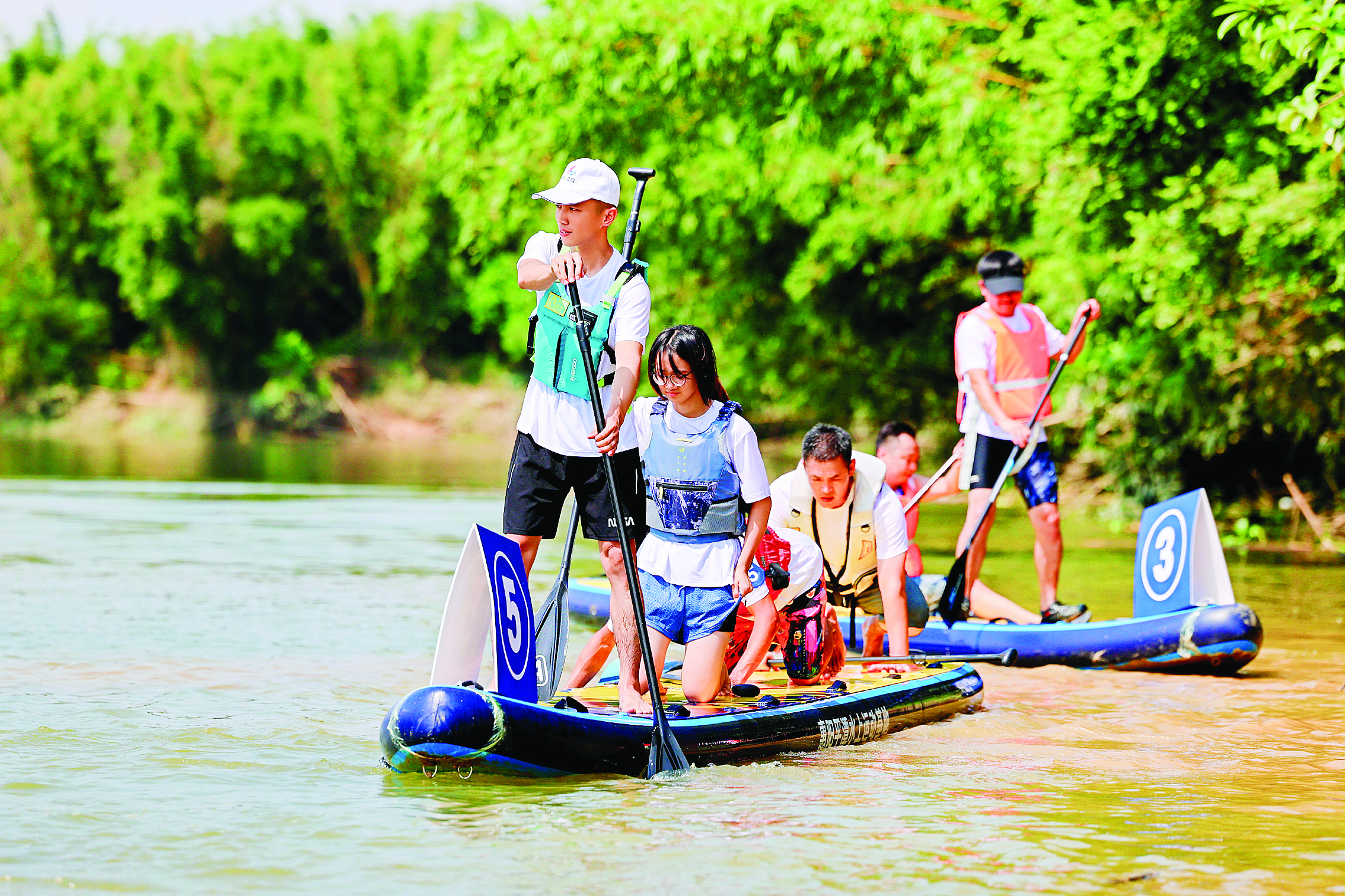 以“生態(tài)+非遺”為核心特色,串聯(lián)起良井、平潭、永湖等鎮(zhèn)街的生態(tài)資源與文化瑰寶。在走廊內的亞維濃生態(tài)園、懷安原鄉(xiāng)生態(tài)旅游景區(qū),游客們可提著籃子鉆進果園,親手摘下成熟的葡萄、火龍果,感受豐收的喜悅;黃洞水庫、梁化河等水域資源被充分利用,除了平潭鎮(zhèn)的槳板、騎行活動,良井鎮(zhèn)在黃洞水庫推出乘坐背包船、獨木舟等休閑項目,滿足不同游客的需求。