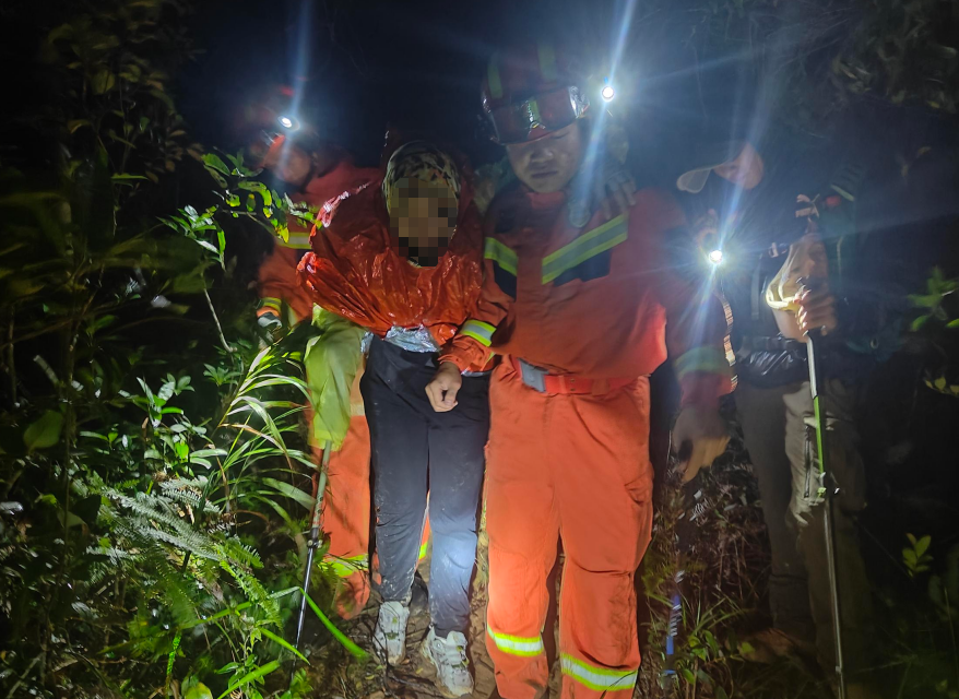 山頂區(qū)域道路崎嶇、缺乏正規(guī)路徑,加之雨后路滑、天色漸暗、氣溫驟降、山風(fēng)加劇,給救援帶來(lái)極大挑戰(zhàn)。救援人員克服重重困難,終于在17時(shí)40分左右與受傷女子匯合。