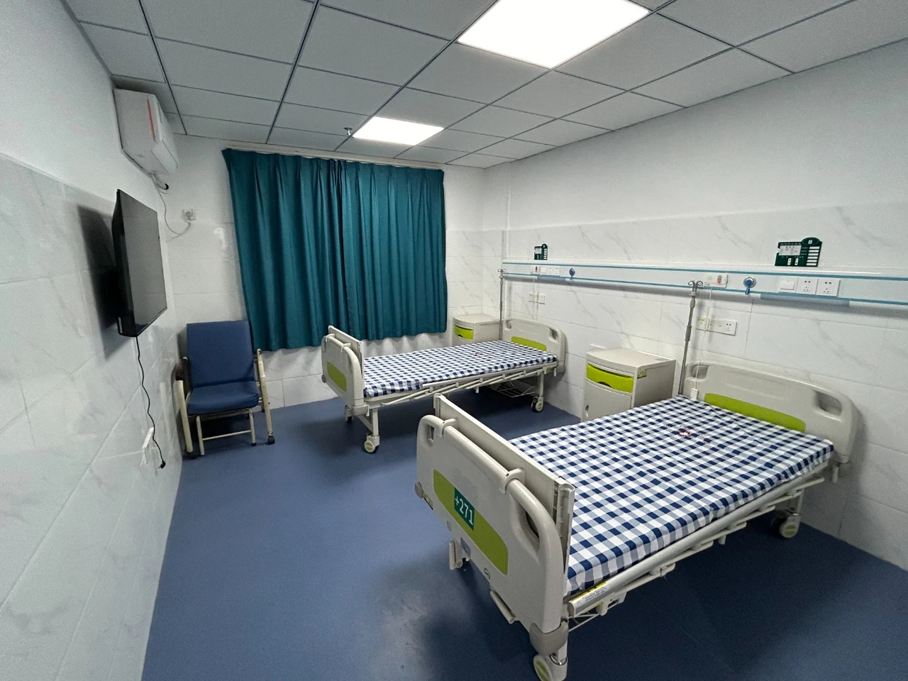 據(jù)了解,新圩鎮(zhèn)中心衛(wèi)生院是惠州市首批醫(yī)養(yǎng)結(jié)合試點(diǎn)單位,此次打造的醫(yī)養(yǎng)結(jié)合服務(wù)中心占地面積1000平方米,共設(shè)置60張養(yǎng)老床位,重點(diǎn)面向失能、半失能長者提供“醫(yī)康養(yǎng)一體”的綜合服務(wù)。中心住院部規(guī)劃有雙人房與三人房兩種房型,其中雙人房面積約21㎡,三人房約30㎡,所有病房均配備中央供氧、生命體征監(jiān)測儀等專業(yè)醫(yī)療設(shè)備,同時兼具空調(diào)、彩電、獨(dú)立衛(wèi)生間等生活設(shè)施,24小時熱水供應(yīng)保障到位,為長者營造安全舒適的居住環(huán)境。