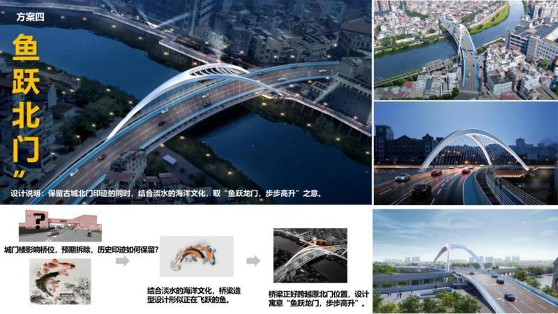 設(shè)計說明:保留古城北門印跡的同時,結(jié)合淡水的海洋文化,取“魚躍龍門,步步高升”之意。