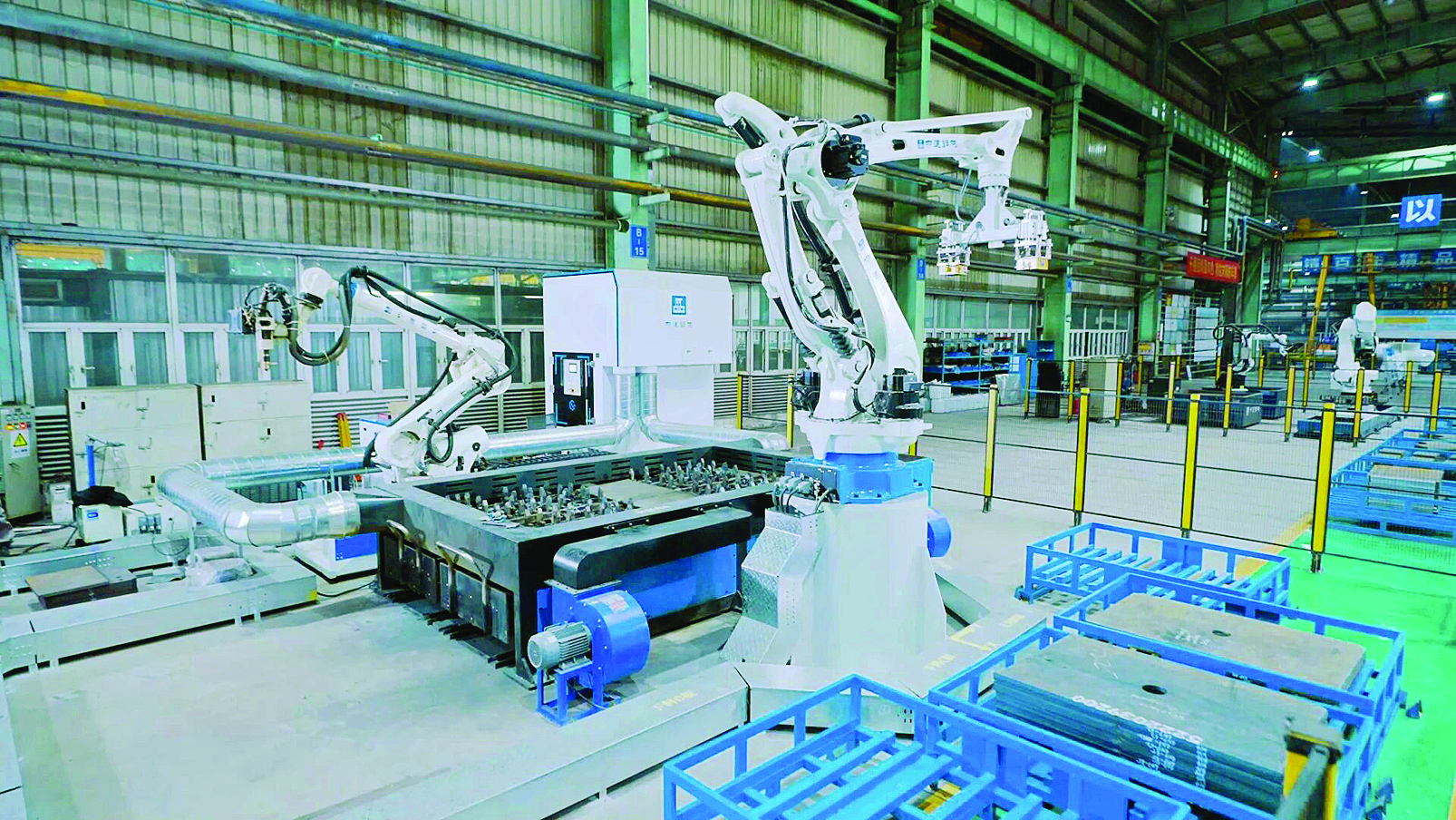 走進中建鋼構廣東有限公司生產基地,60余臺智能化機器人集群正高速運轉,智能坡口切割、懸臂式焊接等工序一氣呵成,火花四濺中,鋼板被精準拼接成各類鋼構件。今年以來,該基地新增25臺工業(yè)機器人,輕鋼產線自動化率顯著提升,大直徑水利管道產線完成高端化改造,數(shù)智化轉型不僅降低了運營成本,更成為企業(yè)核心競爭力的重要支撐。
